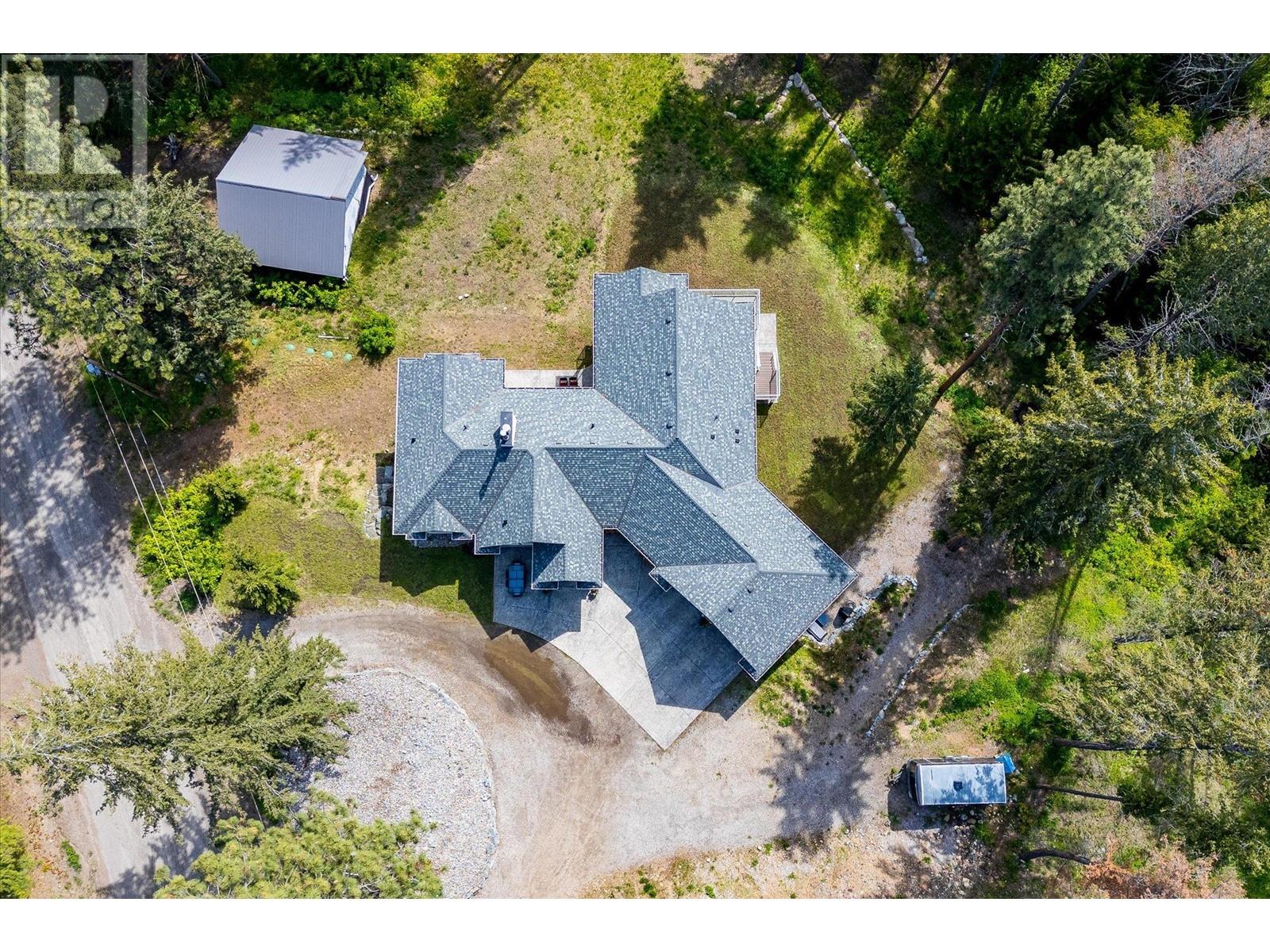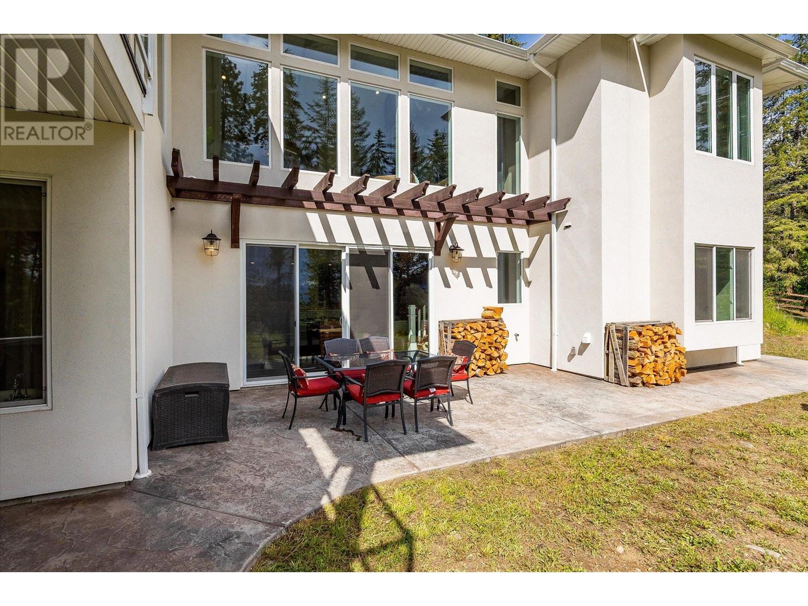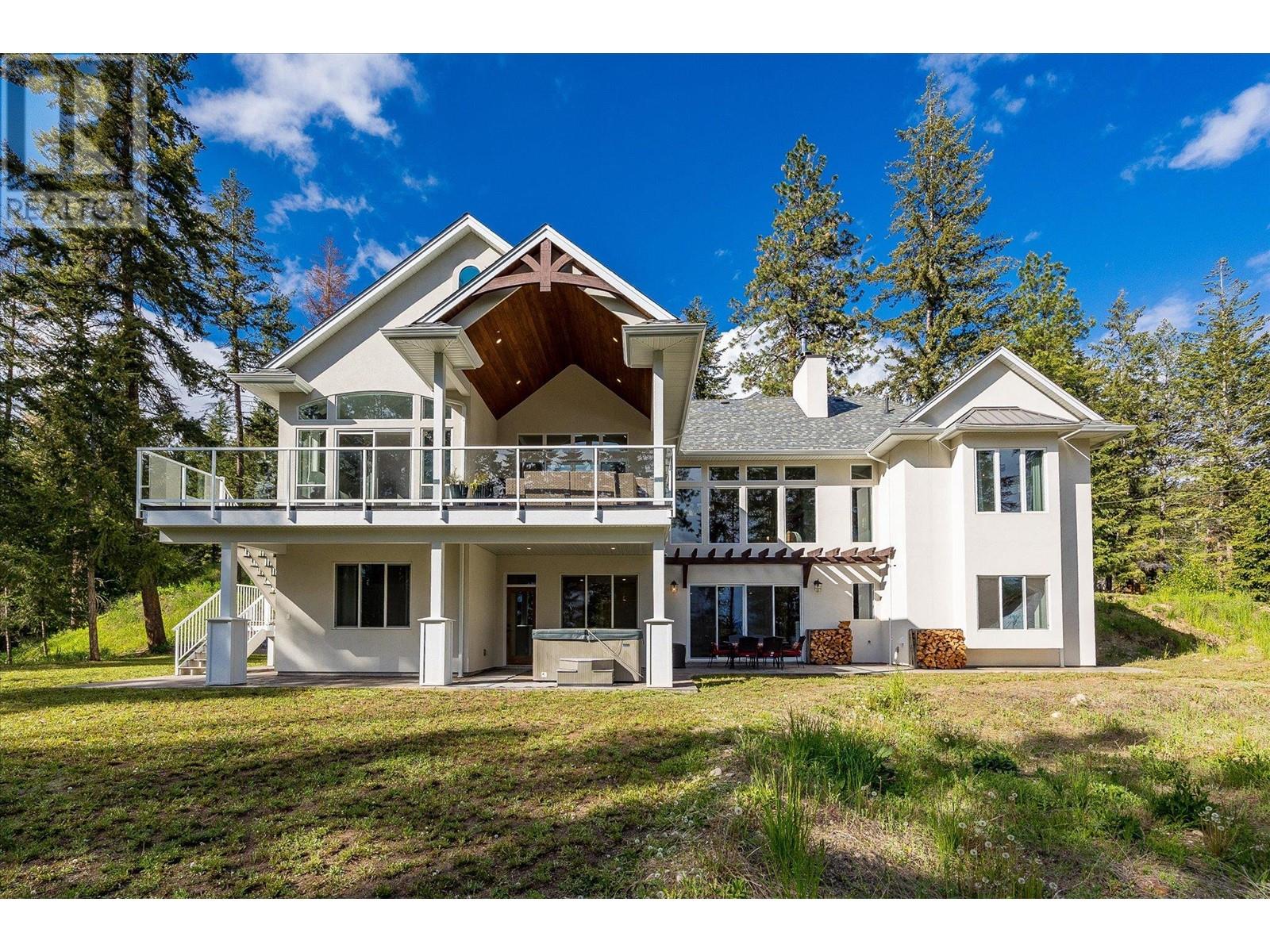 Stunning 8-bedroom + den/office, 5-bathroom residence with a legal suite, situated on a private 4.59-acre parcel in the Vernon area of the Okanagan Valley. Finished in 2018 and boasting over 4,900 sq.ft. of finished living space, this home spares no expense. Upon entering, you are immediately greeted in the living room by soaring ceilings and an emphatic stone-covered, wood-burning fireplace. This area opens to a beautiful kitchen with an island, stainless steel appliances, and a hidden pantry. The main floor offers the perfect main-floor living, with 2 bedrooms serviced by a Jack & Jill style bathroom, a luxurious master suite with access to the balcony space, and a private ensuite. Downstairs, there is a large recreational room with a full bar and a large space with a separate office and bedroom, great if you have a home-based business that requires separation from the rest of the living space. There are two additional full bedrooms serviced by a full bathroom and access to an expansive patio. There is also a 2-bedroom, 1 bathroom legal suite under the suspended slab garage, offering a mortgage helper, or the perfect spot for family/guests. The large detached workshop is perfect for your toys, woodworking, etc! This can be an active hobby farm, with extensive gardening space, a greenhouse, studio/shed, chicken coop, and extensive cross-fencing and paddocked areas for your potential animals. The remainder of the property feels like your own park! (id:14735)