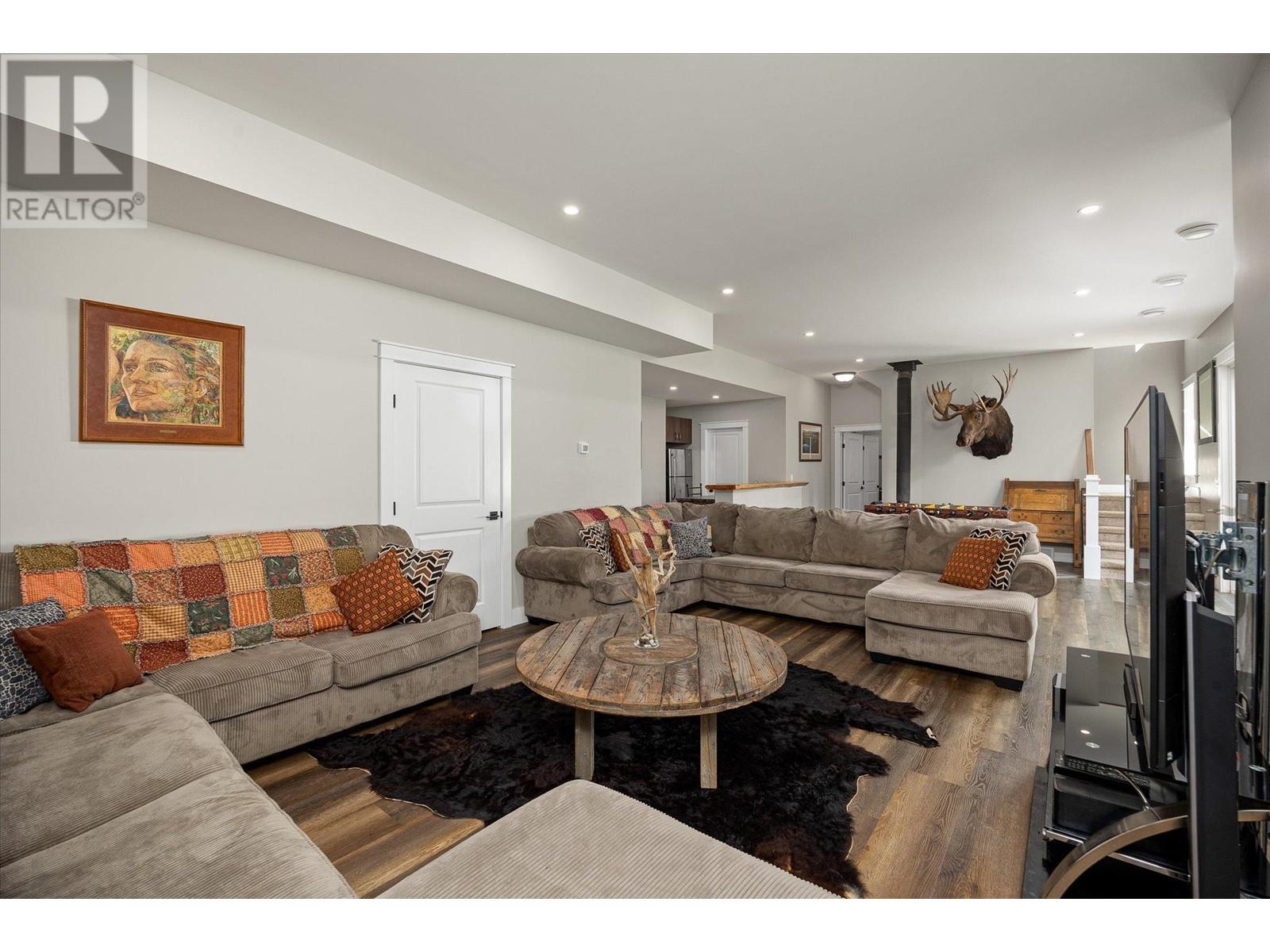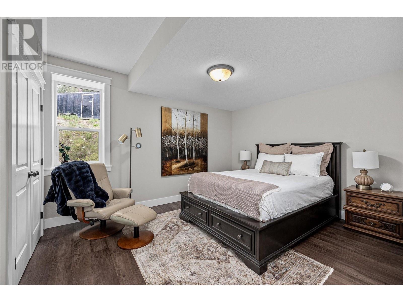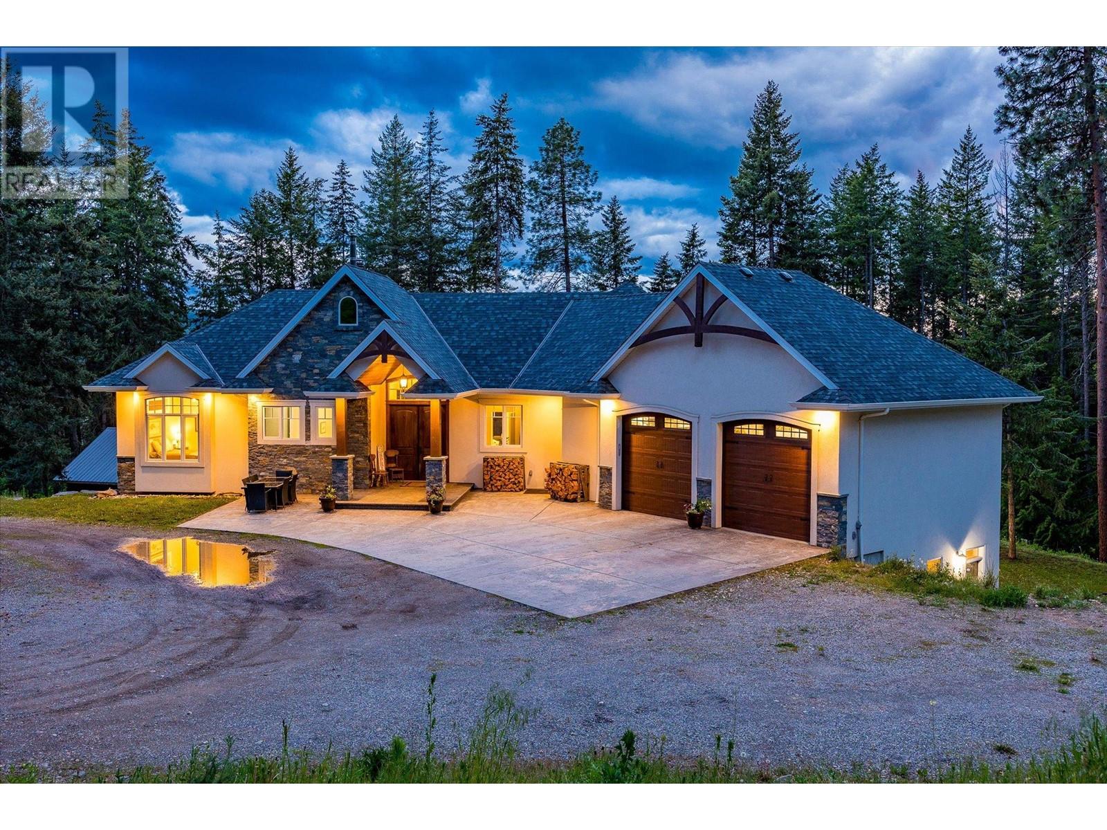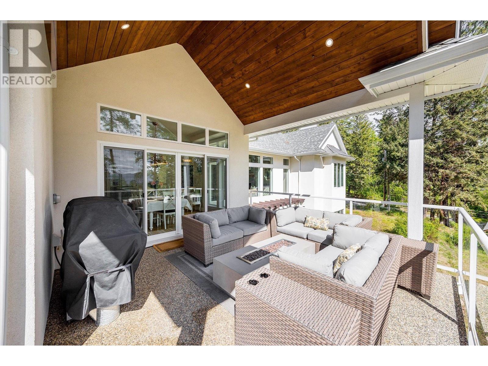 Stunning 8-bedroom + den/office, 5-bathroom residence with a legal suite, situated on a private 4.59-acre parcel in the Vernon area of the Okanagan Valley. Finished in 2018 and boasting over 4,900 sq.ft. of finished living space, this home spares no expense. Upon entering, you are immediately greeted in the living room by soaring ceilings and an emphatic stone-covered, wood-burning fireplace. This area opens to a beautiful kitchen with an island, stainless steel appliances, and a hidden pantry. The main floor offers the perfect main-floor living, with 2 bedrooms serviced by a Jack & Jill style bathroom, a luxurious master suite with access to the balcony space, and a private ensuite. Downstairs, there is a large recreational room with a full bar and a large space with a separate office and bedroom, great if you have a home-based business that requires separation from the rest of the living space. There are two additional full bedrooms serviced by a full bathroom and access to an expansive patio. There is also a 2-bedroom, 1 bathroom legal suite under the suspended slab garage, offering a mortgage helper, or the perfect spot for family/guests. The large detached workshop is perfect for your toys, woodworking, etc! This can be an active hobby farm, with extensive gardening space, a greenhouse, studio/shed, chicken coop, and extensive cross-fencing and paddocked areas for your potential animals. The remainder of the property feels like your own park! (id:14735)