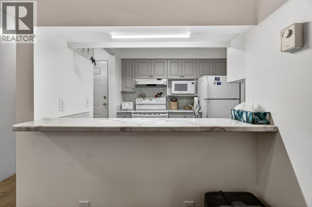 MOVE IN READY ONE BEDROOM CONDO - Tired of renting? This is your opportunity for an affordable option or the perfect investment property. South facing balcony with view of Mount Ida. Updated kitchen, some newer appliances, paint, flooring, insuite laundry, updated bathroom, built-in in the dining area, new baseboards, new screen door, new A/C unit, etc. Walking distance to downtown, shopping, parks, restaurants. Storage locker and covered parking. (id:14735)
