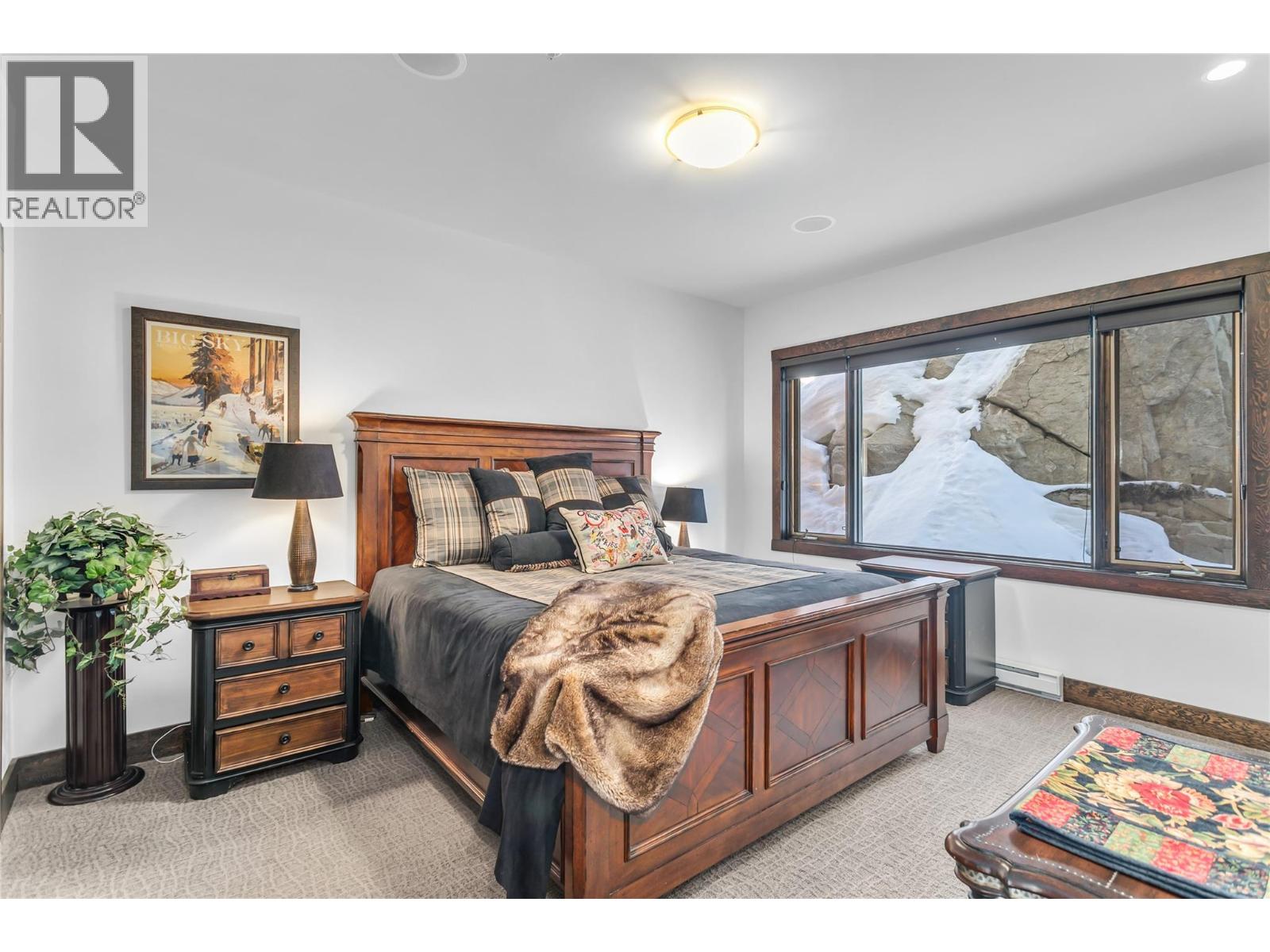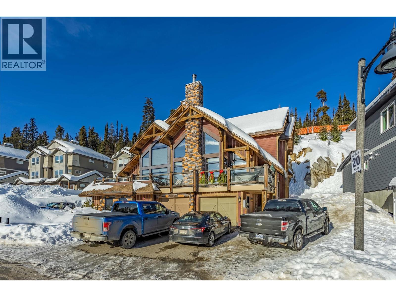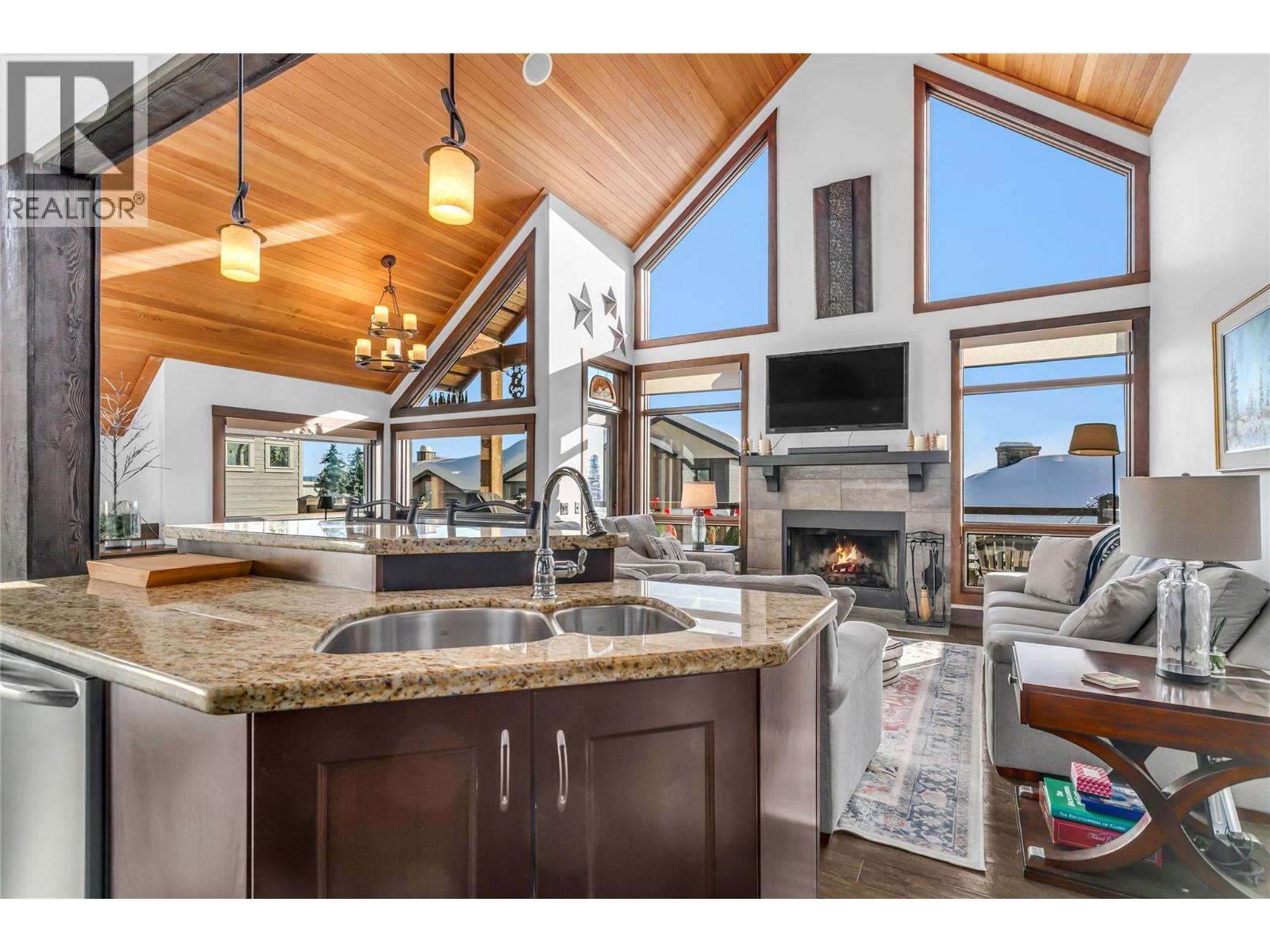 Located in Grizzly Ridge at Big White Ski Resort, this true classic ski chalet delivers timeless alpine character paired with thoughtful, high-end upgrades throughout. Originally built as the show home, the residence showcases superior craftsmanship, refined design, and premium finishes rarely found on the mountain. The home has never been rented with 1 owner and presents in exceptional condition. The main living level features two large bedrooms, each with its own ensuite and one with a gas fireplace for cozy nights, while the upper level offers two additional spacious bedrooms complemented by a full bathroom. In total, the home includes 3.5 bathrooms, all with heated floors and a large steam shower in the main primary, providing comfort and functionality for families and guests. The former garage has been converted into a family room and ski/mud room with in floor radiant heat, adding approximately 375 sq ft of valuable living space (not included in finished measurements and easily converted back to a garage if desired). The main living area is anchored by vaulted ceilings, a chef’s kitchen and a WETT-certified wood-burning fireplace, creating an inviting chalet atmosphere. Additional highlights include views of the Monashee Mountain range through the floor to ceiling windows, a wine cellar, a loft, and a generous private patio with hot tub. Low strata fees complete this standout Grizzly Ridge offering. Furnishings are negotiable. (id:14735)