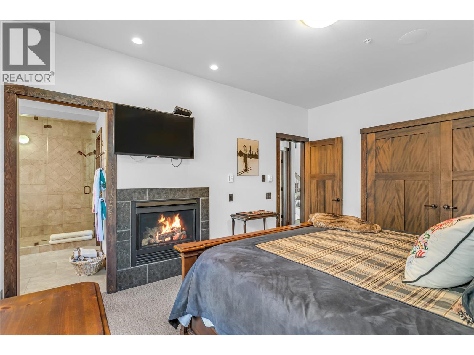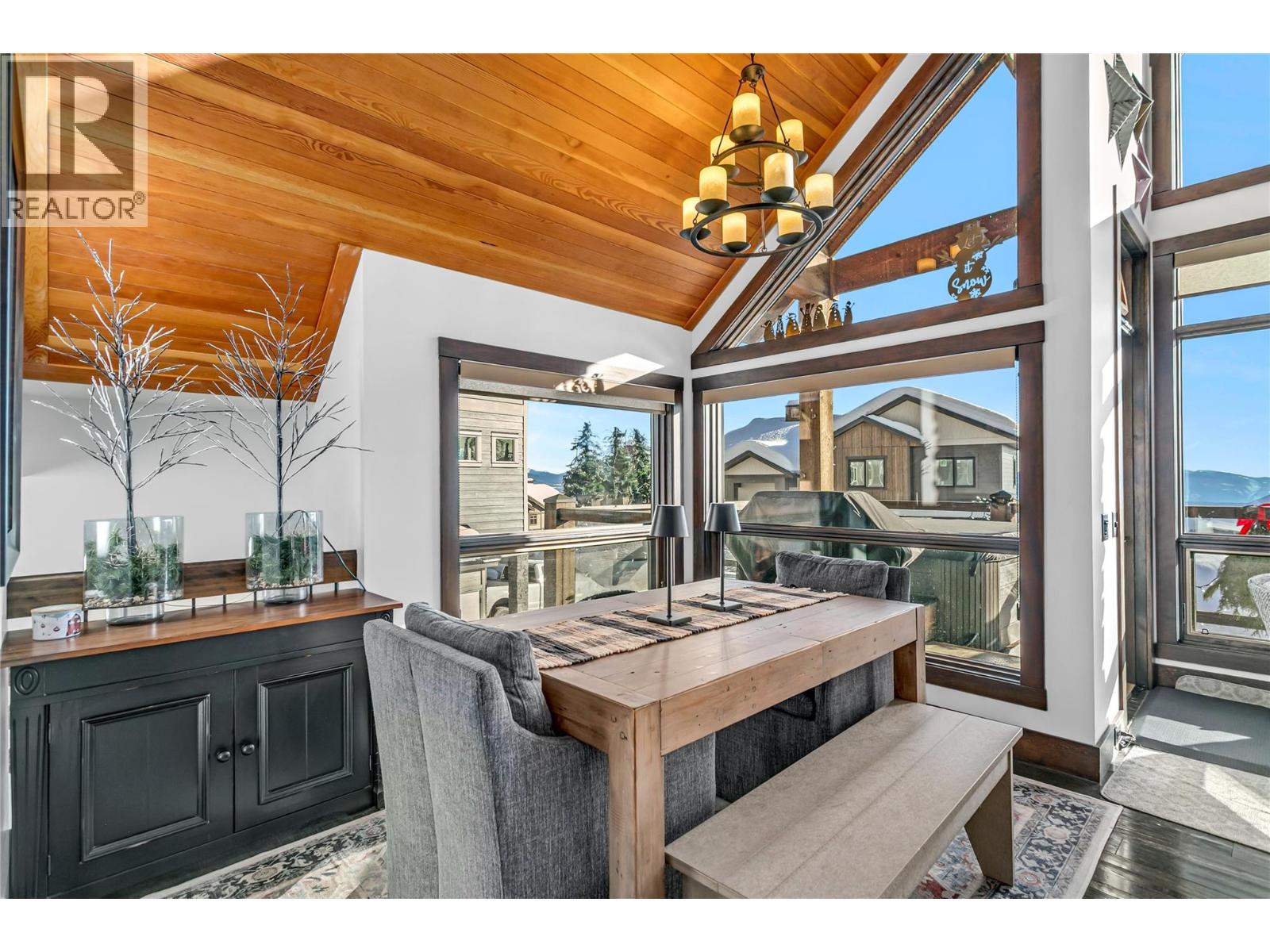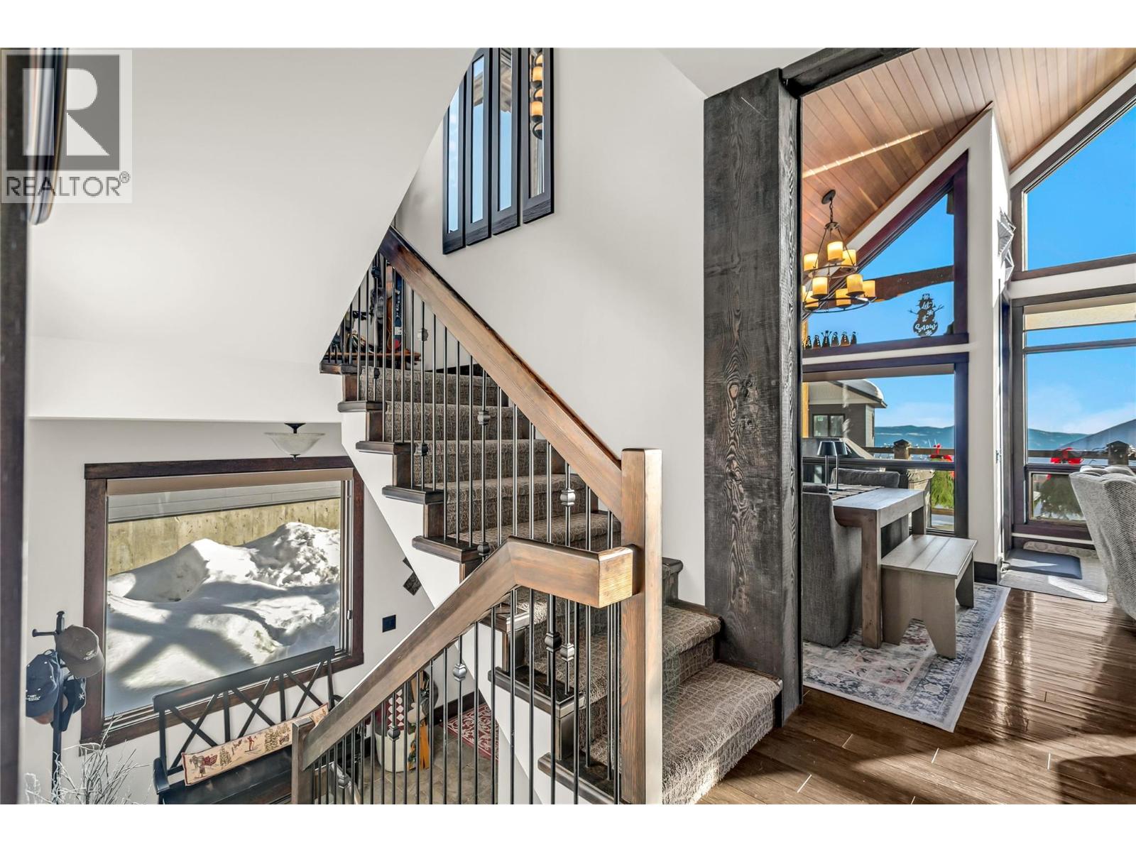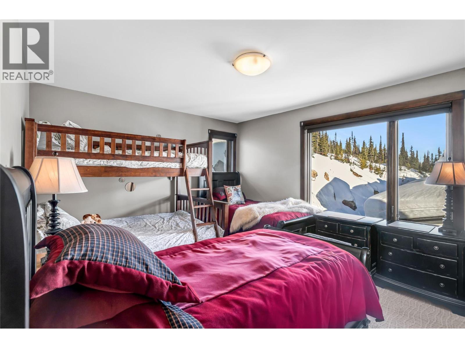 Located in Grizzly Ridge at Big White Ski Resort, this true classic ski chalet delivers timeless alpine character paired with thoughtful, high-end upgrades throughout. Originally built as the show home, the residence showcases superior craftsmanship, refined design, and premium finishes rarely found on the mountain. The home has never been rented with 1 owner and presents in exceptional condition. The main living level features two large bedrooms, each with its own ensuite and one with a gas fireplace for cozy nights, while the upper level offers two additional spacious bedrooms complemented by a full bathroom. In total, the home includes 3.5 bathrooms, all with heated floors and a large steam shower in the main primary, providing comfort and functionality for families and guests. The former garage has been converted into a family room and ski/mud room with in floor radiant heat, adding approximately 375 sq ft of valuable living space (not included in finished measurements and easily converted back to a garage if desired). The main living area is anchored by vaulted ceilings, a chef’s kitchen and a WETT-certified wood-burning fireplace, creating an inviting chalet atmosphere. Additional highlights include views of the Monashee Mountain range through the floor to ceiling windows, a wine cellar, a loft, and a generous private patio with hot tub. Low strata fees complete this standout Grizzly Ridge offering. Furnishings are negotiable. (id:14735)