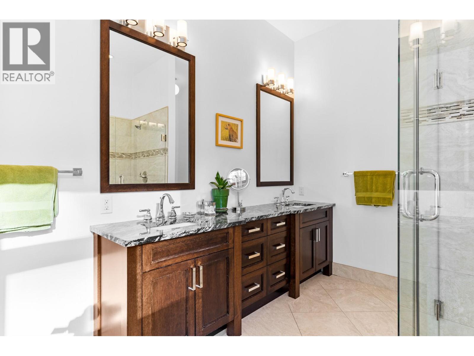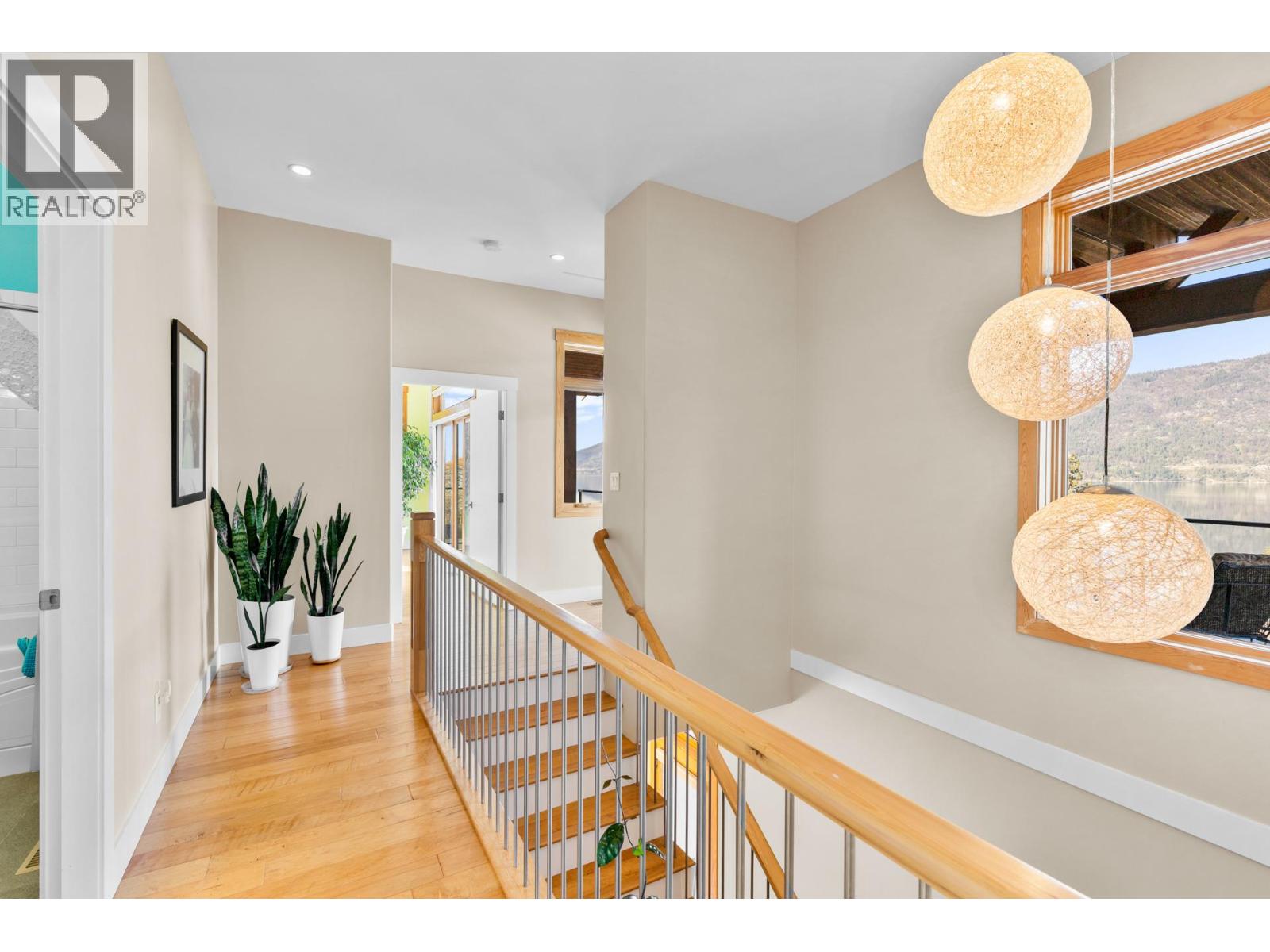 Stunning residence located in the prestigious Okanagan Centre area of Lake Country! With four bedrooms, a media room, an office/den, four bathrooms, and over 3600 square feet on a 1.15 acre lot, this is a turn-key 2014-built home that offers great proximity to the water. Upon entering the property, you are greeted by an abundance of parking that leads you to your oversized double-car garage. Boasting 10' ceilings and engineered hardwood on all levels, almost every room has a spectacular view. The in-floor heated lower level includes a full bedroom, three-piece bathroom, laundry, and a sound insulated media room. The main level offers a spacious kitchen that opens to the dining and living rooms, as well as a large lakeview office space, perfect for those working from home. The kitchen has stainless steel appliances, granite countertops, large island, and a walk-in pantry. The back patio and garden offers a retreat from the afternoon sun and access to a large upper yard and wild space, while the screened front deck offers unparalleled outdoor living directly facing sunsets over Okanagan Lake. Upstairs, the three-bedroom layout is great for families, with two bedrooms serviced by a four-piece bathroom, and a spacious primary bedroom with balcony access and a large five-piece ensuite that includes a soaker tub. The main and upper level decks are both engineered for hot tubs! Okanagan Centre is known for its public lakeshore areas, the boat launch, cafes, wineries, and a quaint community that can't be replicated. (id:14735)