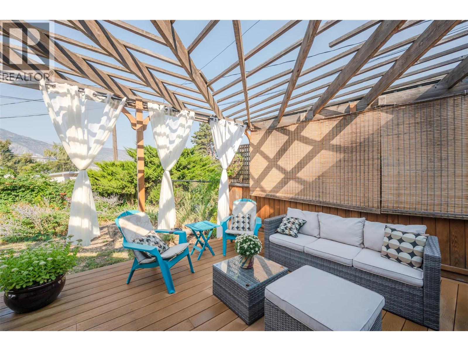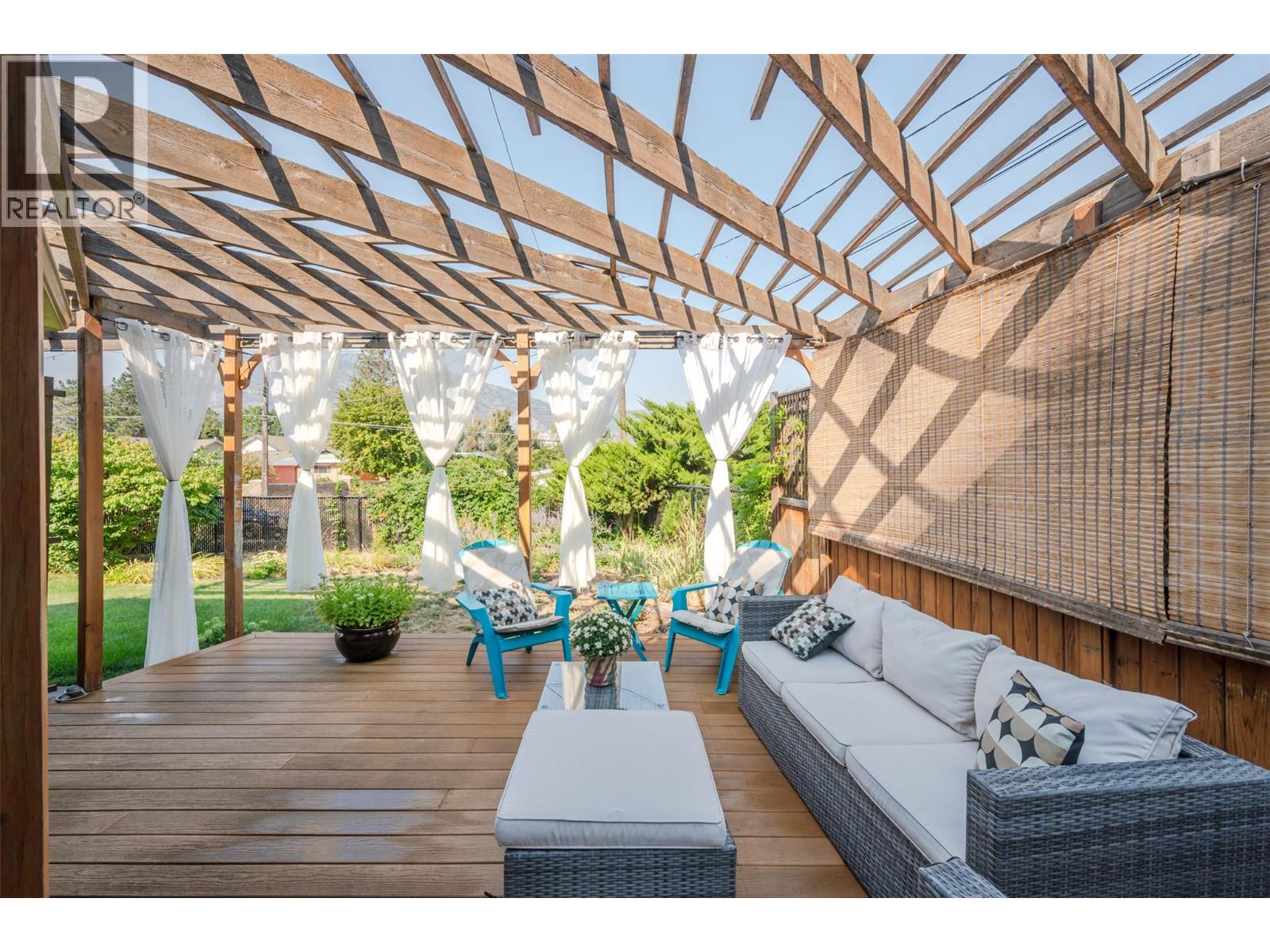 Welcome to your private oasis on 0.54 acres just steps from Skaha Lake! Only minutes from town and a short stroll to the water, this meticulously maintained rancher with a brand new furnace offers 2 bedrooms and 2 bathrooms, showcasing true pride of ownership! Inside, you’ll love the gorgeous, vaulted ceilings and a wall of windows that flood the home with natural light. The large kitchen and dining area with stainless steel appliances is perfect for hosting family and friends. While the gas fireplace and hardwood parquet floors add warmth and charm throughout the home. The spacious primary suite features a 3-piece ensuite, and the second bedroom is a perfect flex space, complete with a murphy bed for guests or a home office. Outside is a private oasis with a gorgeous pergola providing privacy and shade to the large composite deck, creating an inviting setting for gatherings or quiet evenings! The front and side yards are the perfect space to play or have a large garden! Ample driveway space provides easy parking for vehicles, guests, and summer toys. BONUS: Lake access is right across the road—launch your paddleboard or kayak in under a minute! This one-of-a-kind home combines comfort, privacy, and an unbeatable location near Skaha Lake—truly a rare find! (id:14735)