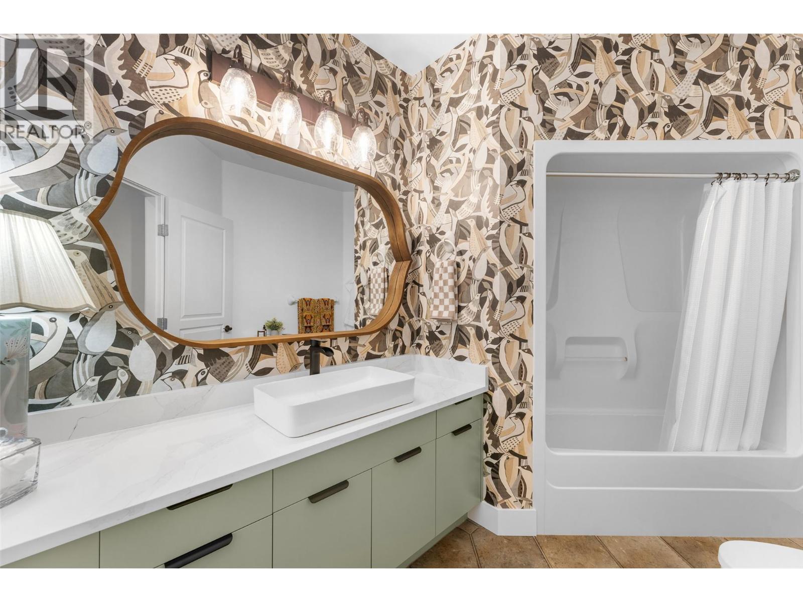 Modern European inspired design meets Okanagan comfort in this completely reimagined Dilworth Mountain home. Over the last couple of years, every surface, finish, & fixture was meticulously selected and renewed, creating a home where custom details reveal themselves at every turn. Wide-plank white oak engineered hardwood flows throughout, vaulted ceilings soar above structural wood beams, & upgraded Lutron lighting highlights the thoughtful touches that make this property feel like a work of art. The main level flows seamlessly, anchored by a chef’s kitchen with a 10-foot peninsula offering seating for four, bright white Shaker cabinetry, Cafe & KitchenAid appliances, a unique laundry room with checkerboard tile, coffee bar with beverage fridge, and custom storage. The living room features a floor-to-ceiling tiled gas fireplace and built-in TV display, while the primary suite offers backyard views, a walk-in closet with custom built-ins, and a 5-piece ensuite with dual vanities and soaking tub. An office with designer wallpaper and 2-piece powder room complete this floor. Upstairs, the lofted family room floats above the main level with dramatic vaulted ceilings, wraparound windows framing peek-a-boo lake views, and doors opening to a private deck. Two bedrooms and a bonus den with abundant natural light round out this level. The lower level offers a spacious recreation room with a huge crawl space. Two car garage. Steps from Lillooet Park and countless hiking trails. (id:14735)