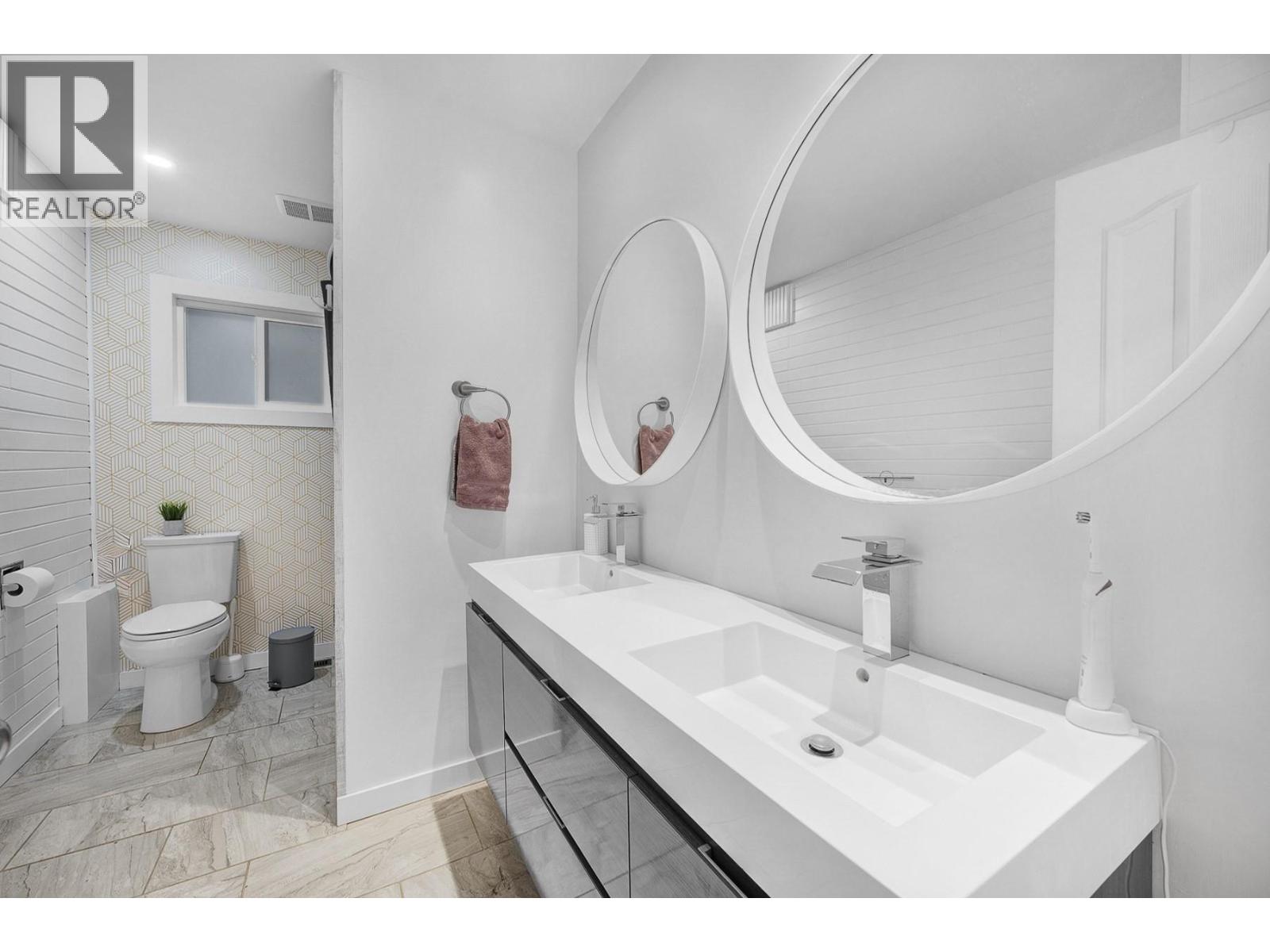 Set in the heart of the Black Mountain Community, this beautifully updated home offers privacy, flexibility, and exceptional outdoor living on a large, mature lot. Surrounded by established trees and open space, the setting is ideal for families, gardeners, or those seeking room to add a future shop while maintaining privacy. The main level has been thoughtfully remodelled into a bright, open-concept layout featuring two bedrooms and a stunning modern 5-piece bathroom. The living, dining, and kitchen areas flow seamlessly together, creating a welcoming space filled with natural light. Step directly out to a full-width deck spanning the back of the home, perfect for entertaining, relaxing, and enjoying the peaceful surroundings. The lower level offers excellent versatility with a fully self-contained 1 bedroom + den suite, complete with its own kitchen, living area, laundry, and private entrance. Covered and enclosed patio areas on this level provide additional outdoor living space with privacy and year-round usability. Located minutes from parks, trails, schools, and the Black Mountain Golf Club, this property combines lifestyle, comfort, and future potential in one of Kelowna’s most sought-after neighbourhoods. Located minutes from parks, trails, schools, and golf, with easy access to Big White and downtown, this home offers space, privacy, and flexibility in a true community setting. Love Where You Live! (id:14735)