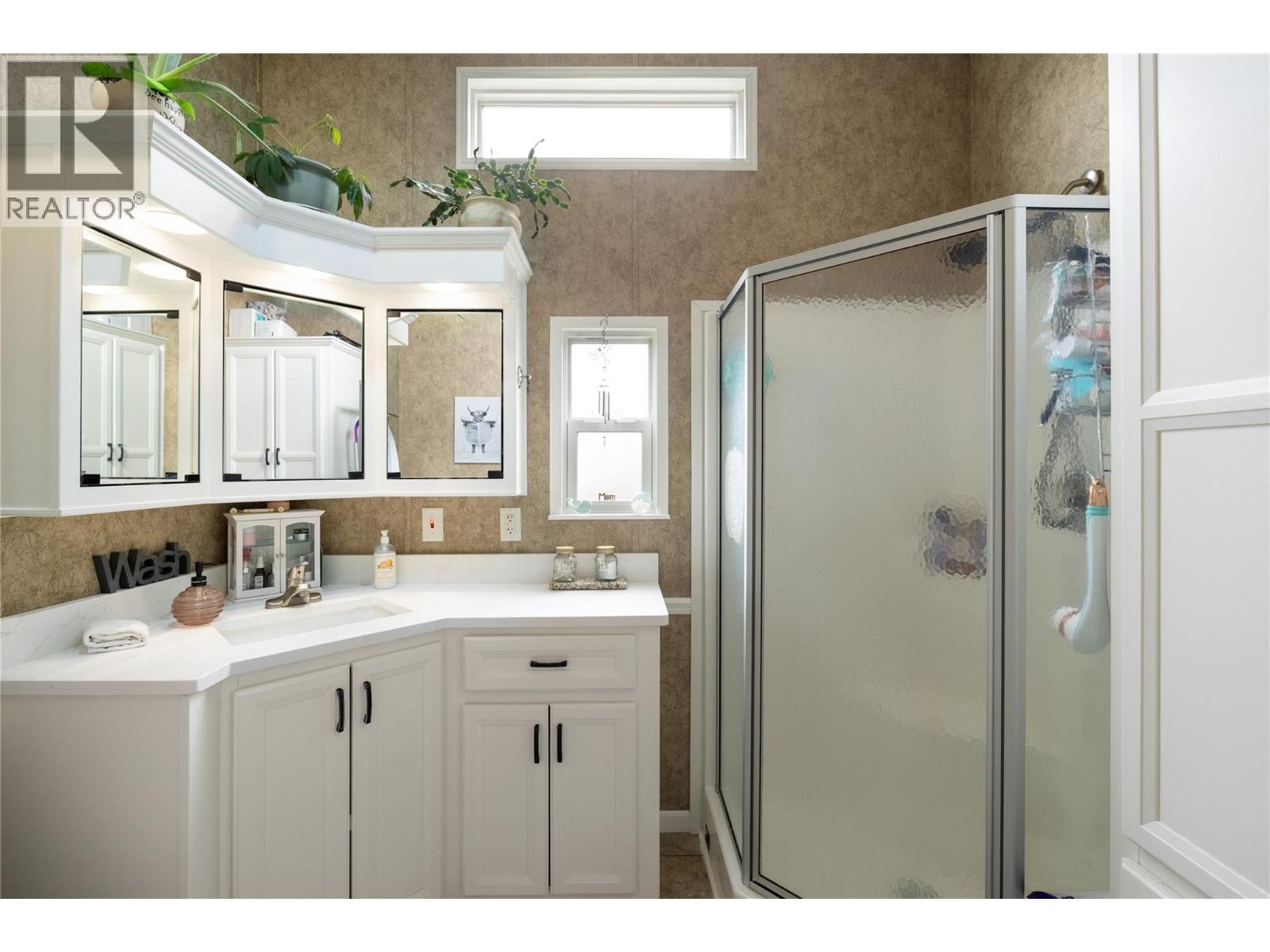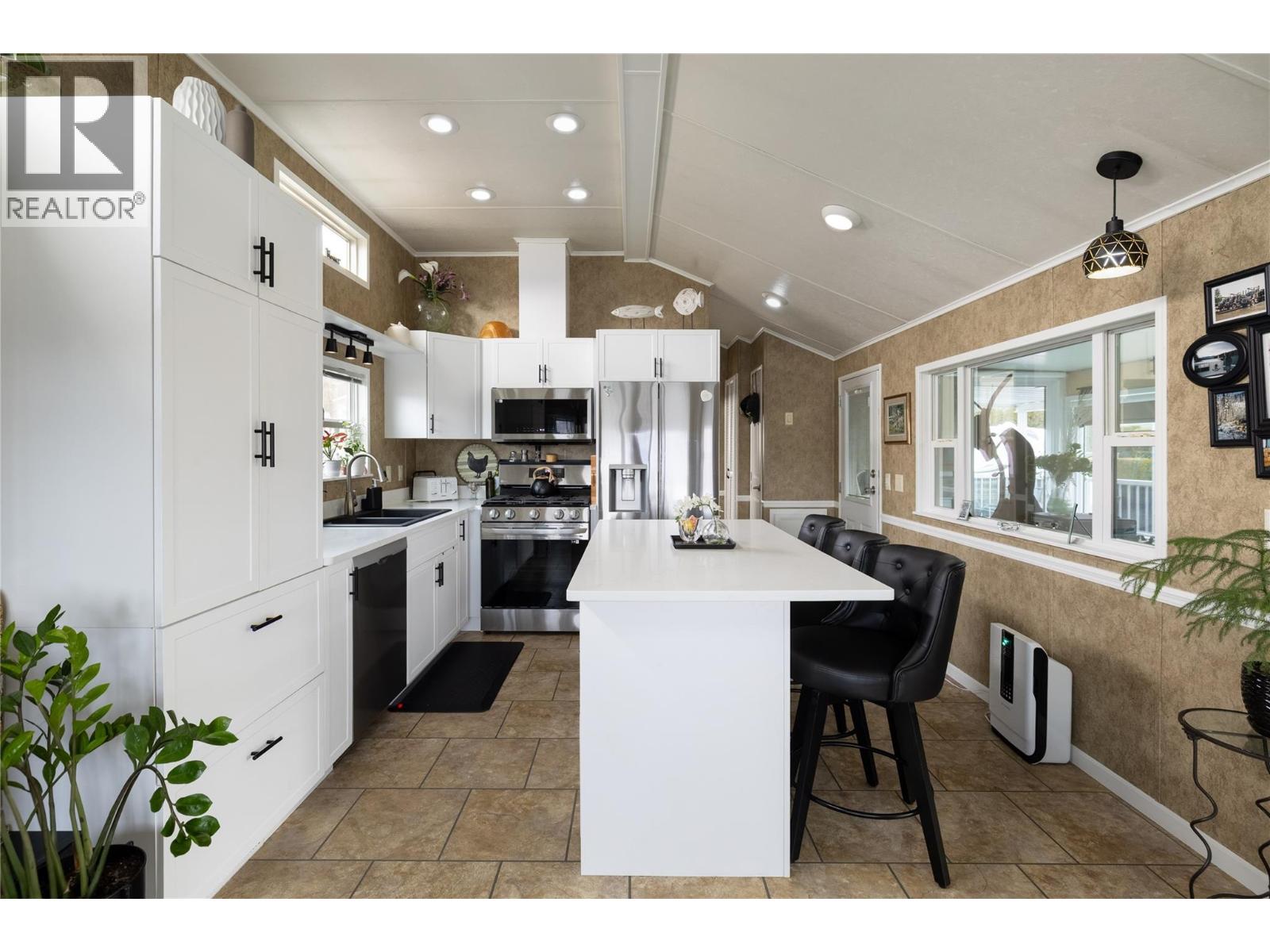 Welcome to this beautifully updated home in the Swan Lake RV Resort community. This well-appointed 1 bedroom, 1 bathroom home features an open-concept floor plan with vaulted ceilings creating a bright and spacious atmosphere. The updated kitchen offers new cabinetry, quartz countertops, and stainless steel appliances. The functional 3-piece bathroom includes a corner shower and quartz countertop. A well insulated sunroom provides valuable additional living space, perfect for year-round use. Outside, relax on the covered porch and enjoy the convenience of a storage shed with power. Swan Lake RV Resort offers an impressive range of amenities, including a seasonal pool, hot tub, gym, community centre, pickleball area, library, off-leash dog area, and a well-equipped workshop for owners use. Monthly fees include your community facilities, water, sewer, garbage, recycling, community landscaping, and snow removal. No age restrictions, and your pets are welcome here! Located just steps from the shore of Swan Lake, bring your kayak or paddleboard and enjoy the lake lifestyle! With a friendly, social atmosphere and regular community events, this property offers a low-maintenance, four-season, or lock-and-leave lifestyle. Don’t miss this opportunity—book your showing today. (id:14735)