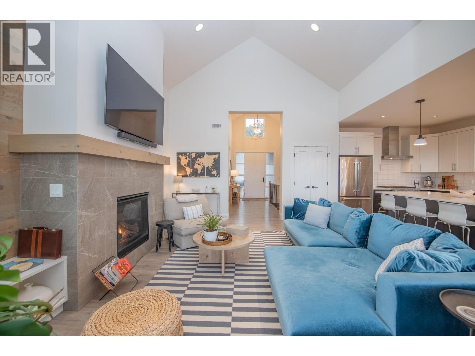 Stunning 4 bed, 3 bath home that shows like new! This half duplex is tucked away on a peaceful, dead-end street with west-facing backyard that offers large patios on both levels to enjoy serene views of the resort, mountain, and golf course. A large foyer greets you upon entry with soaring ceilings that flow into the main living space. The main floor features 2 bedrooms, den, great room, laundry and a open concept kitchen/dining area. The gourmet kitchen features Kitchen Aide stainless appliances with gas stove, quartz counters and pantry. A covered upper deck is accessed by 2 oversized sliding doors that let in tons of natural light. The master retreat features large windows, 5 piece ensuite and walk in closet. Retreat downstairs to a second living room, 2 additional bedrooms and bathroom with heated floors and tile shower. A bonus room with barn door access would make a perfect office, gym or craft room. Lower level also has additional storage room. Walk out to the covered lower patio to lounge near the level backyard or soak in the hot tub. 2 car garage with epoxy floors. No need to maintain as all residents of Predator Ridge pay a low monthly fee for weekly landscaping/mowing and full use of Predator's amazing recreational facilities. Walking trails are steps away with easy access to the spectacular yoga platform. (id:14735)