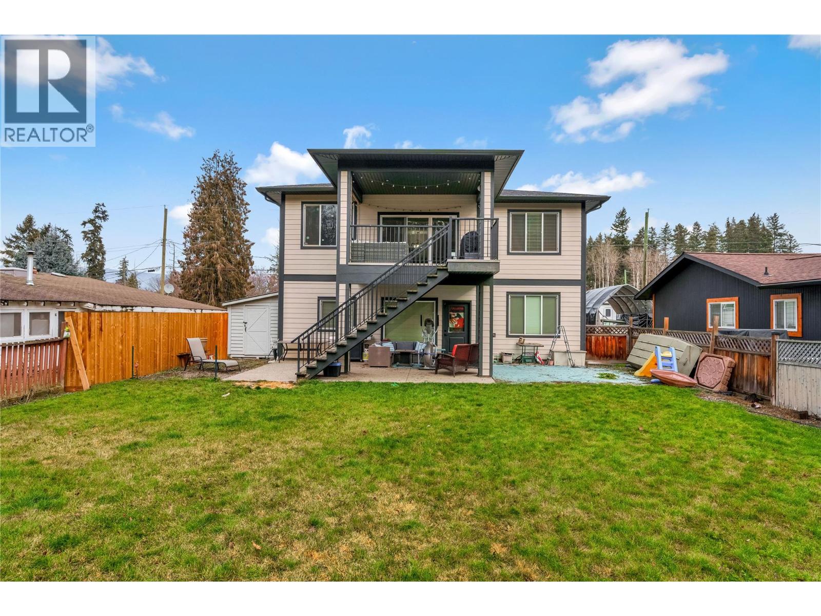 This newer home is located in a well-established Armstrong neighbourhood, close to all schools in town and just steps from the park, pool, ice rink, and fairgrounds—an ideal setting for family life. Thoughtfully designed with space and function in mind, the main floor offers a flexible office or guest room, a spacious laundry area, and easy access to the double garage. The main living area upstairs features a bright, open-concept layout filled with natural light and views of the large, private backyard. The modern kitchen includes plenty of storage and a central island, ideal for everyday living and entertaining. Also upstairs, the home features a bright and spacious master bedroom with an ensuite and walk-in closet, plus two additional well-sized bedrooms and a full bathroom. Outside, the fully fenced backyard is designed for making memories, with plenty of space for kids and pets to play, a fire pit area for cozy family evenings, with stairs to a covered sundeck—perfect for hosting, relaxing, or enjoying sunny afternoons. A storage shed located along the side of the home adds extra space for bikes, tools, and outdoor gear. The property also offers ample parking for vehicles and recreational toys. As a valuable bonus, the home includes a legal, fully self-contained one-bedroom, one-bathroom suite with its own hydro meter—ideal for extended family or as a mortgage helper. (id:14735)