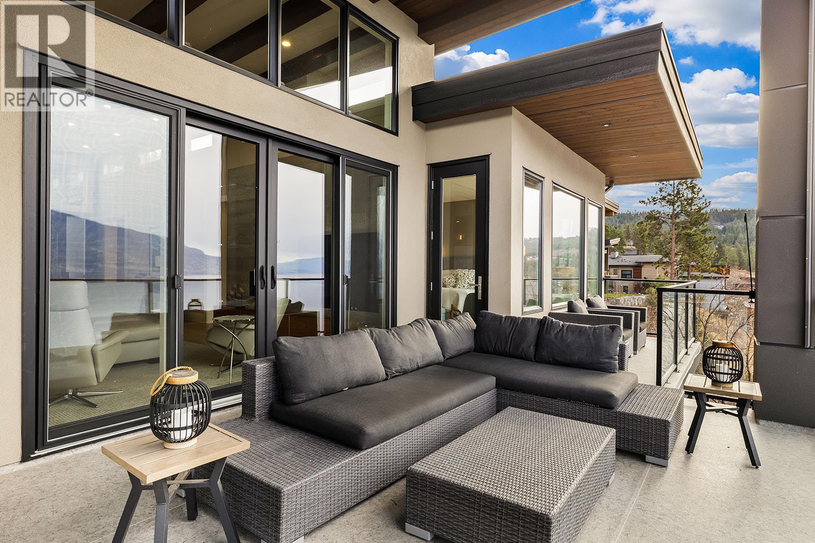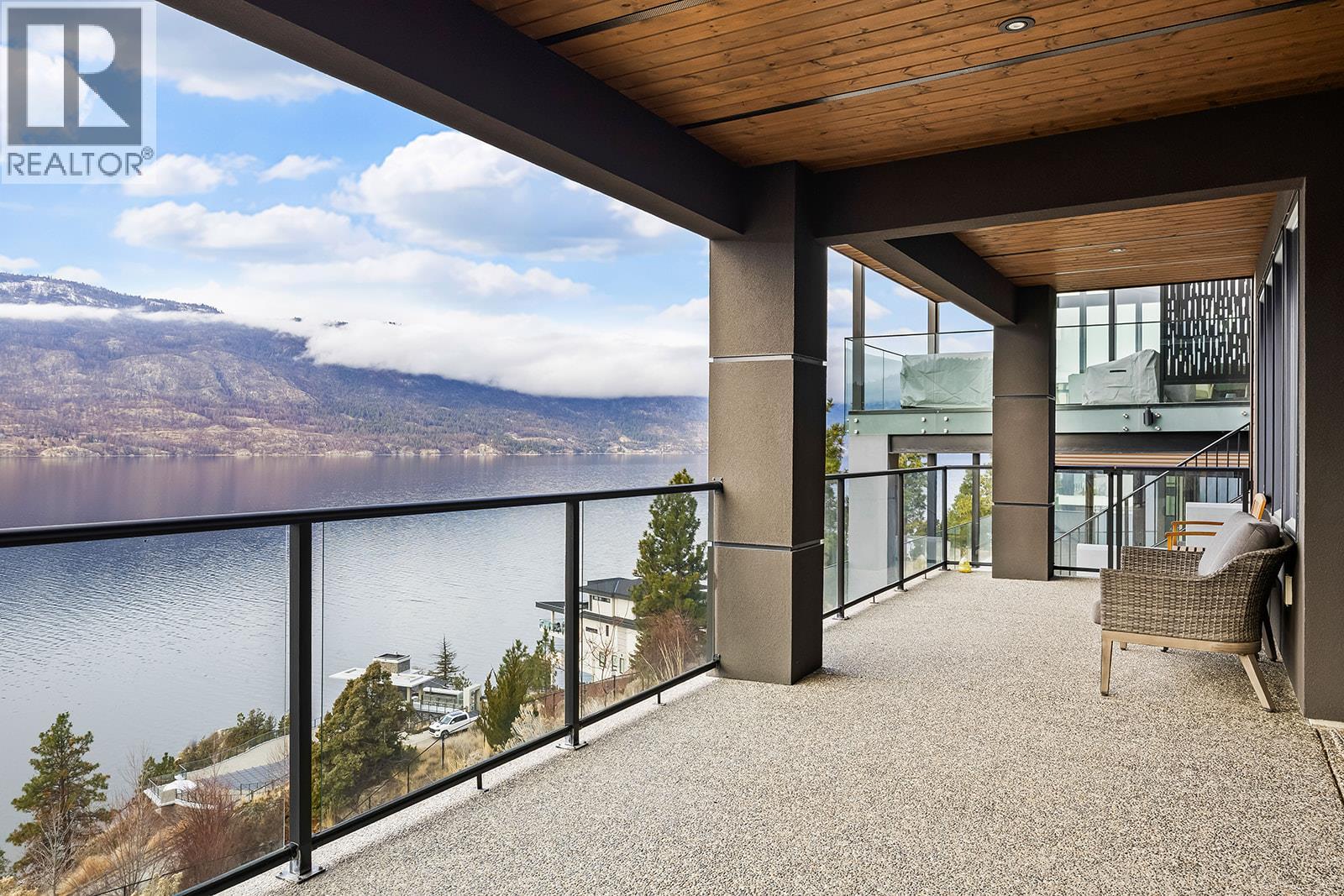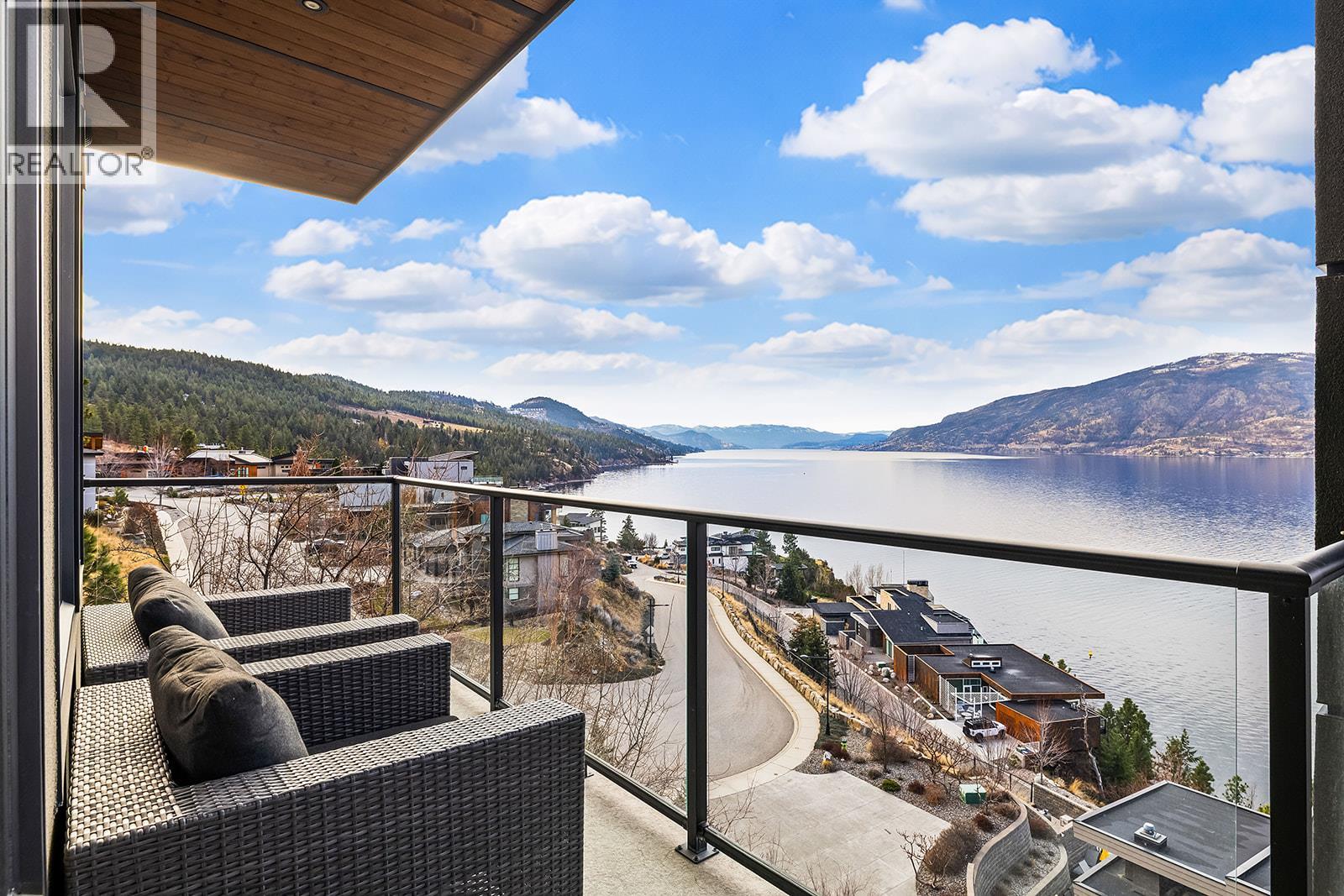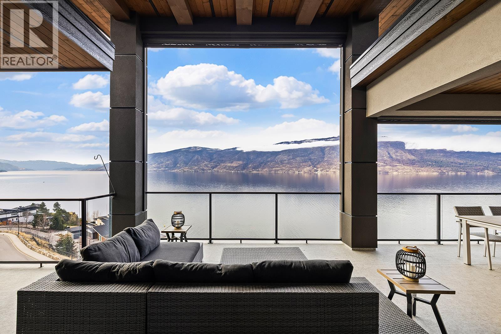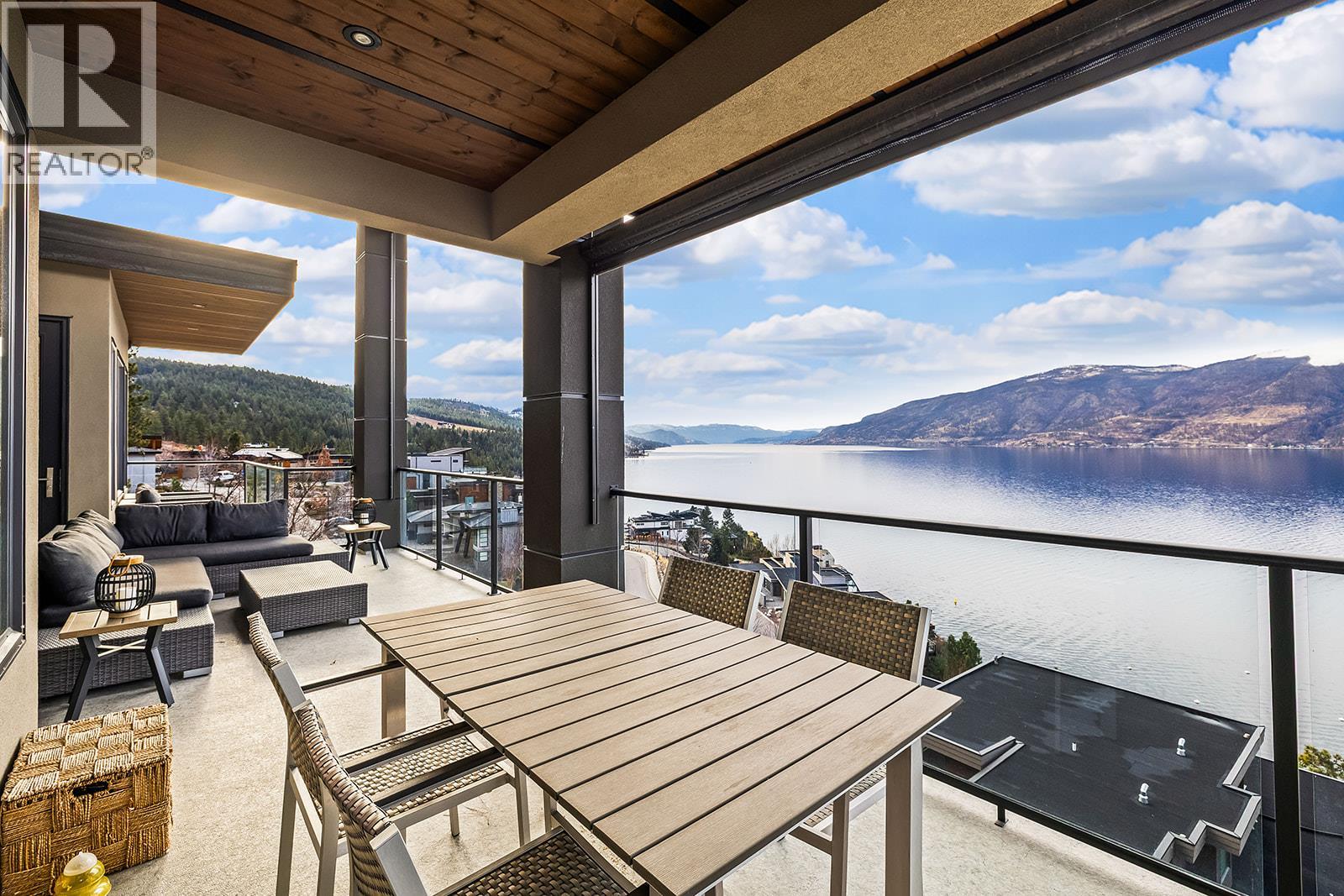 Don't miss out on this stunning home with breath taking views of the lake and mountains in this exclusive Lakestone waterside in lake country. This home has barley been lived in and is in pristine condition. The moment you enter the front door, you're embraced into a space where luxury meets comfort. The panoramic lake view stretches from the bridge in the south to Fintry in the north. Enjoy the main floor great room , with cedar beams, cozy fireplace, professionally designed kitchen with Thermador appliances, stone countertops, dedicated wine fridge and custom horizontal grain walnut cabinetry. The architectural details continue with striking beams leading out to the large deck designed for entertaining, and enjoying the vibrant sunsets. The primary suite on the main floor has a lavish ensuite with oversized walk-in shower, soaker tub, and wiring for hot tub on the aggregate covered deck . The lower level offers a spacious rec. room with a wet bar, 2 additional bed rooms and 2 full bathrooms. The state of the art amenities center in Lakestone include 2 pools, 2 fitness facilities, basket and pickle ball courts, shared dock, endless walking and hiking trails, and a quick walk to the lake access. (id:14735)