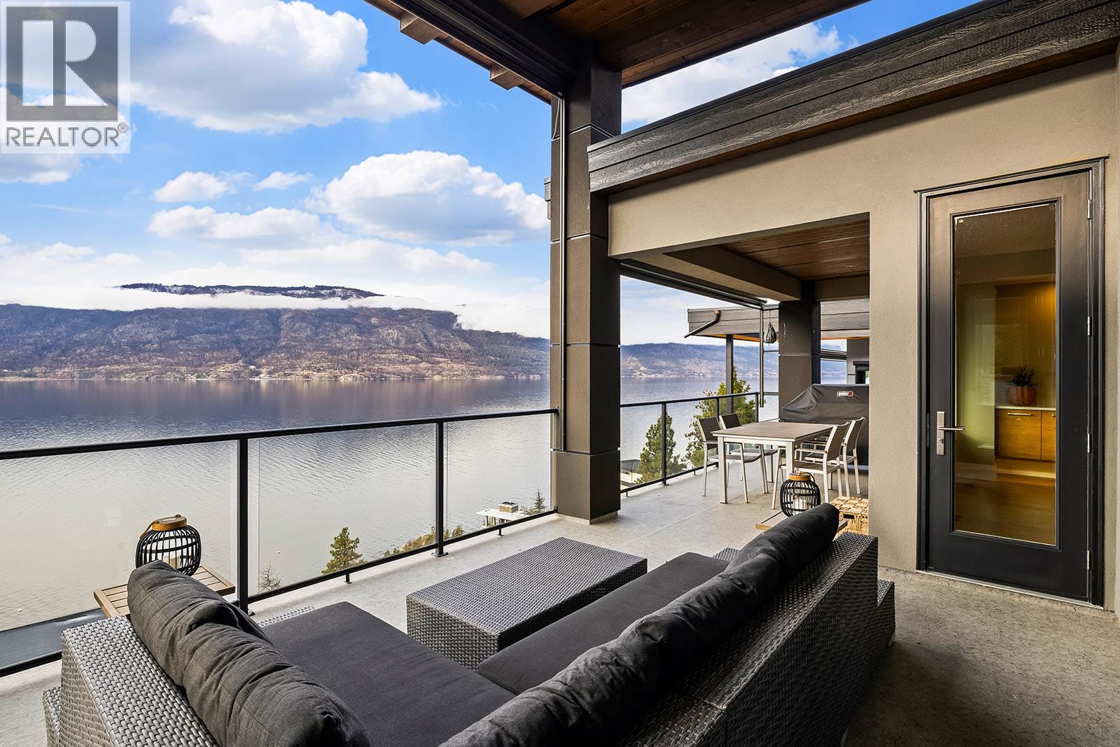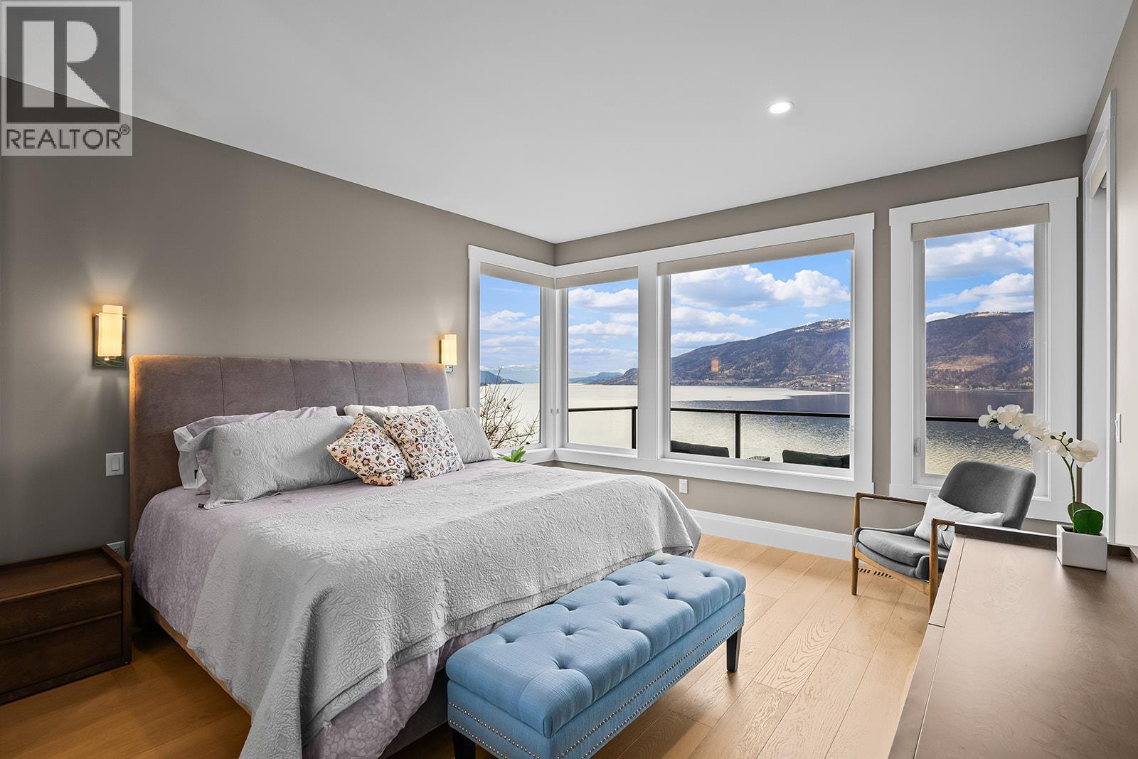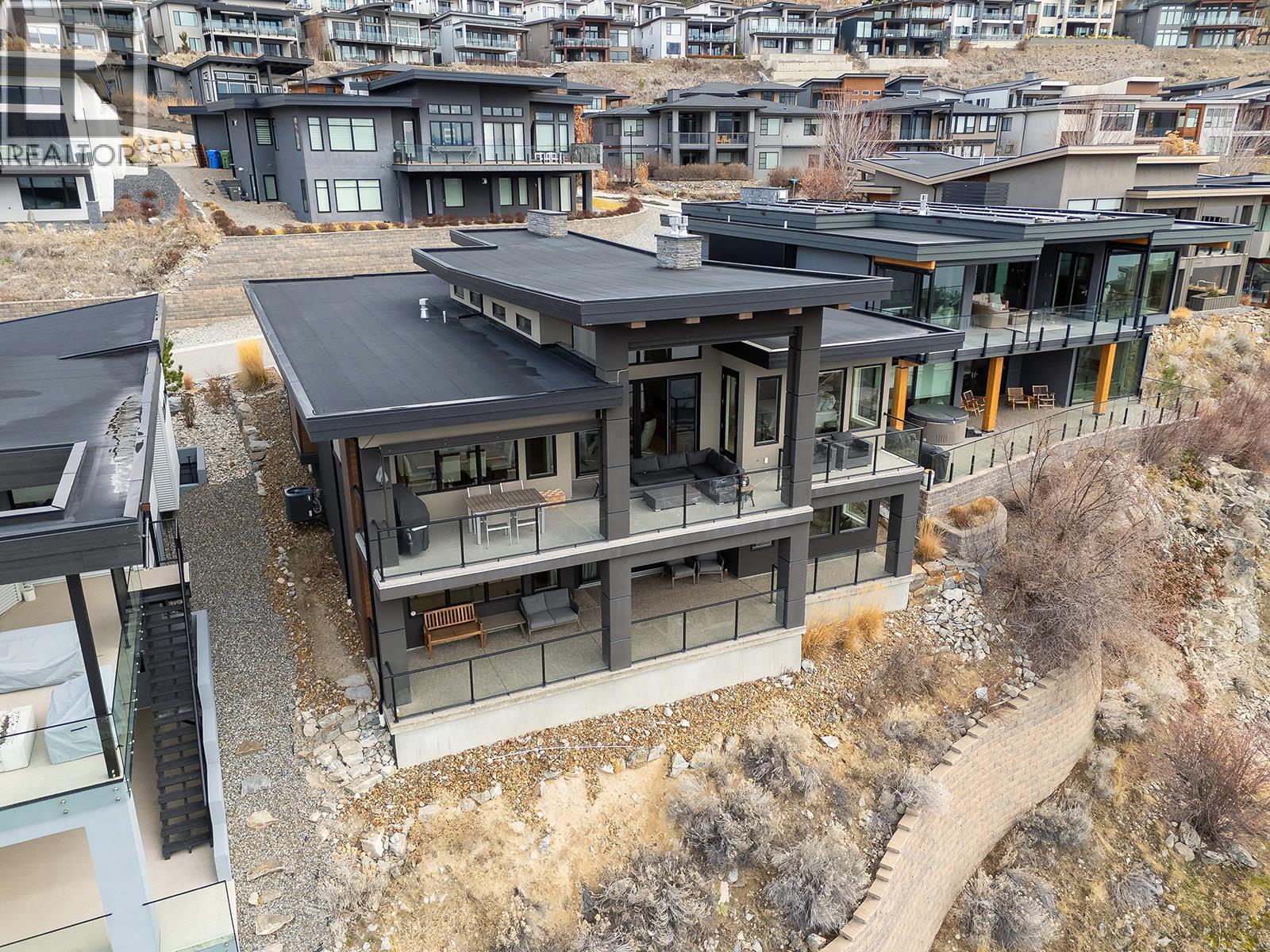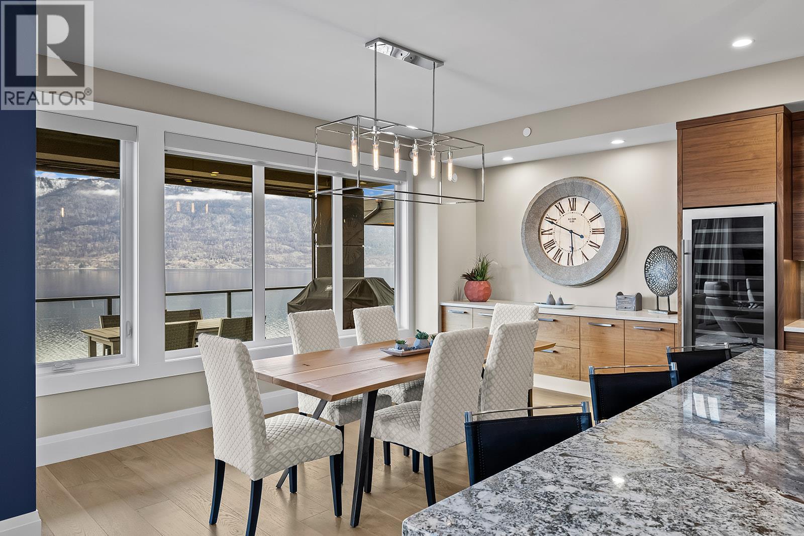 Don't miss out on this stunning home with breath taking views of the lake and mountains in this exclusive Lakestone waterside in lake country. This home has barley been lived in and is in pristine condition. The moment you enter the front door, you're embraced into a space where luxury meets comfort. The panoramic lake view stretches from the bridge in the south to Fintry in the north. Enjoy the main floor great room , with cedar beams, cozy fireplace, professionally designed kitchen with Thermador appliances, stone countertops, dedicated wine fridge and custom horizontal grain walnut cabinetry. The architectural details continue with striking beams leading out to the large deck designed for entertaining, and enjoying the vibrant sunsets. The primary suite on the main floor has a lavish ensuite with oversized walk-in shower, soaker tub, and wiring for hot tub on the aggregate covered deck . The lower level offers a spacious rec. room with a wet bar, 2 additional bed rooms and 2 full bathrooms. The state of the art amenities center in Lakestone include 2 pools, 2 fitness facilities, basket and pickle ball courts, shared dock, endless walking and hiking trails, and a quick walk to the lake access. (id:14735)