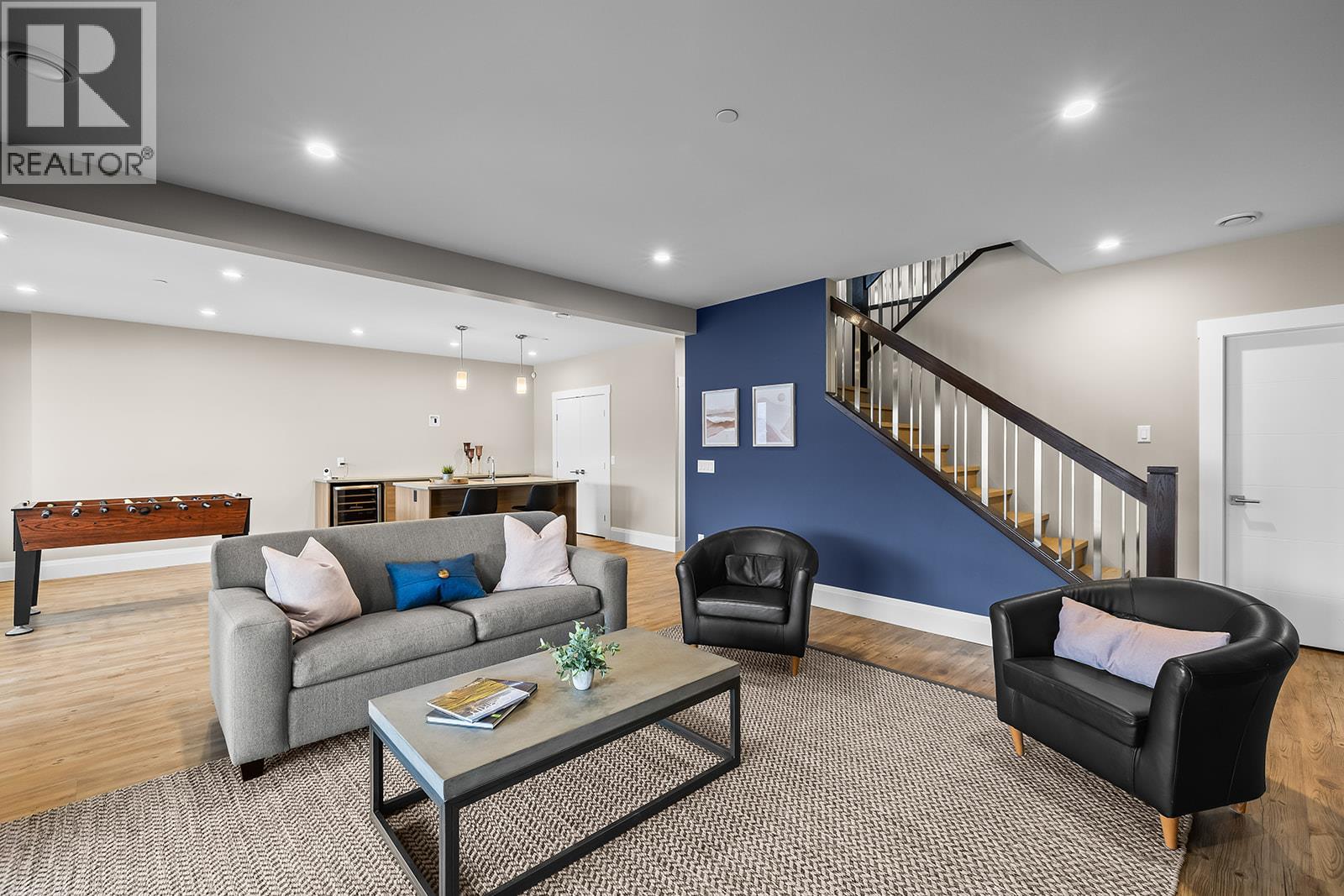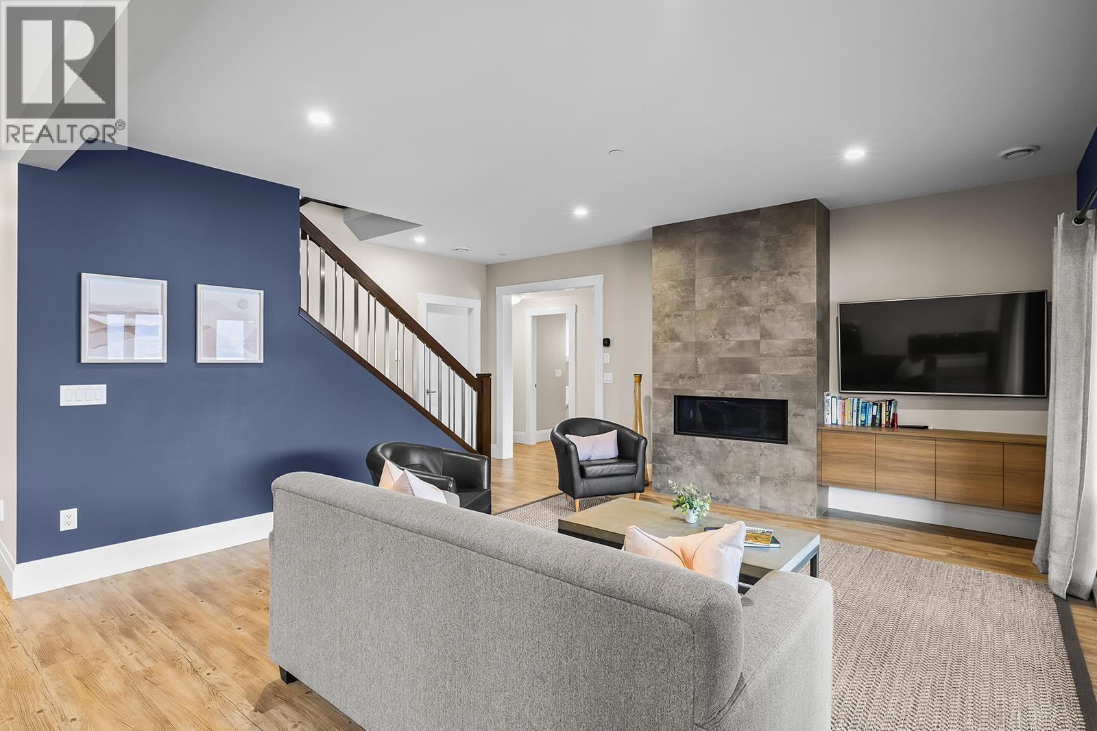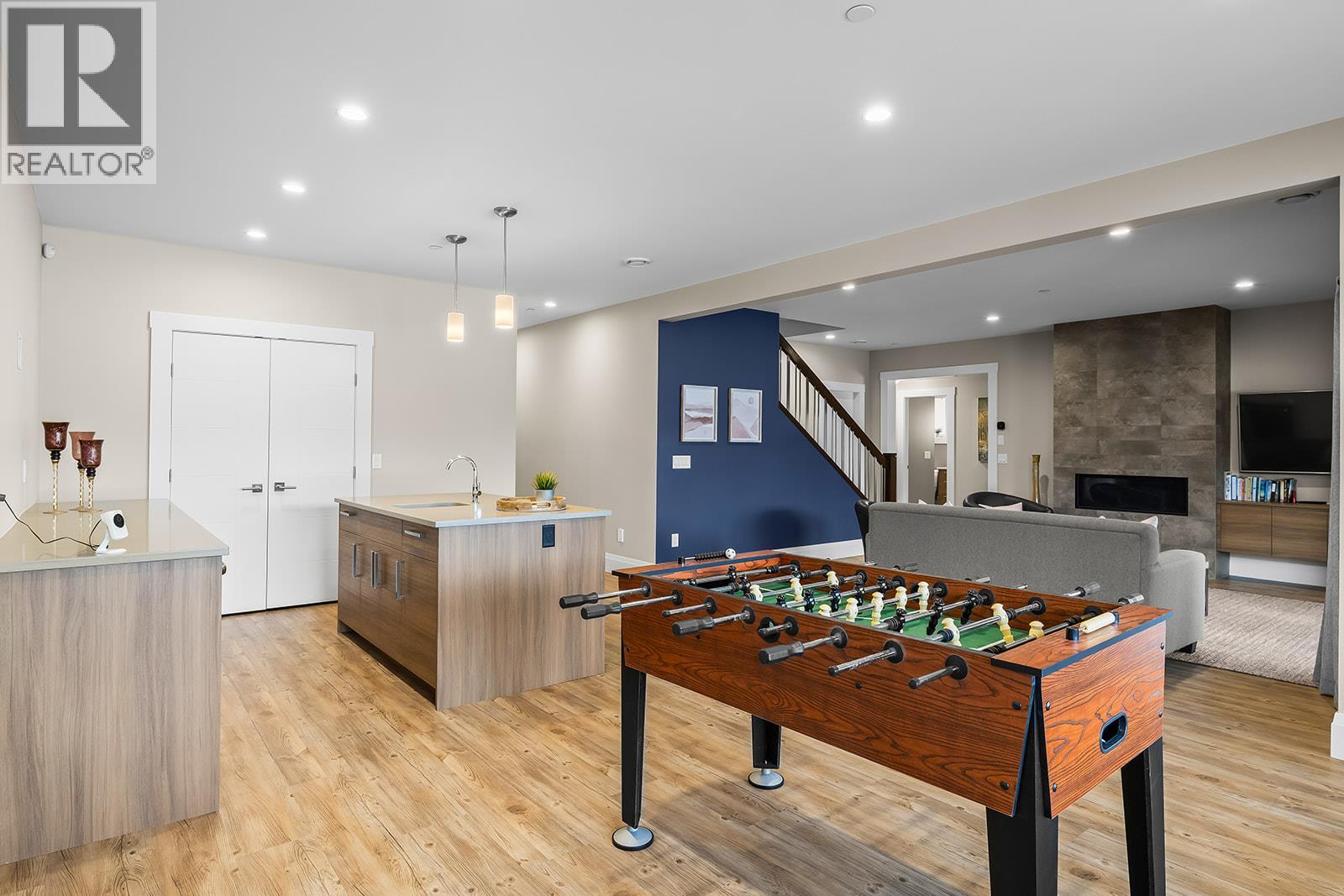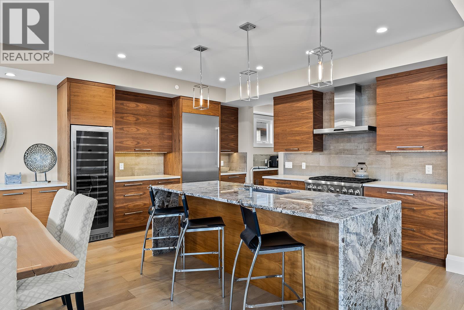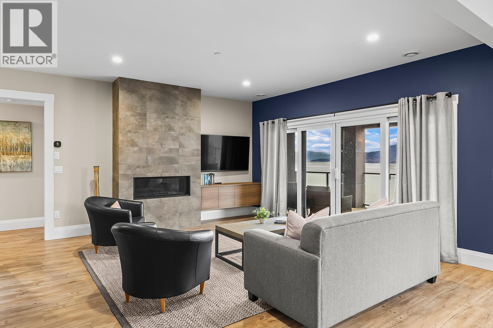 Don't miss out on this stunning home with breath taking views of the lake and mountains in this exclusive Lakestone waterside in lake country. This home has barley been lived in and is in pristine condition. The moment you enter the front door, you're embraced into a space where luxury meets comfort. The panoramic lake view stretches from the bridge in the south to Fintry in the north. Enjoy the main floor great room , with cedar beams, cozy fireplace, professionally designed kitchen with Thermador appliances, stone countertops, dedicated wine fridge and custom horizontal grain walnut cabinetry. The architectural details continue with striking beams leading out to the large deck designed for entertaining, and enjoying the vibrant sunsets. The primary suite on the main floor has a lavish ensuite with oversized walk-in shower, soaker tub, and wiring for hot tub on the aggregate covered deck . The lower level offers a spacious rec. room with a wet bar, 2 additional bed rooms and 2 full bathrooms. The state of the art amenities center in Lakestone include 2 pools, 2 fitness facilities, basket and pickle ball courts, shared dock, endless walking and hiking trails, and a quick walk to the lake access. (id:14735)