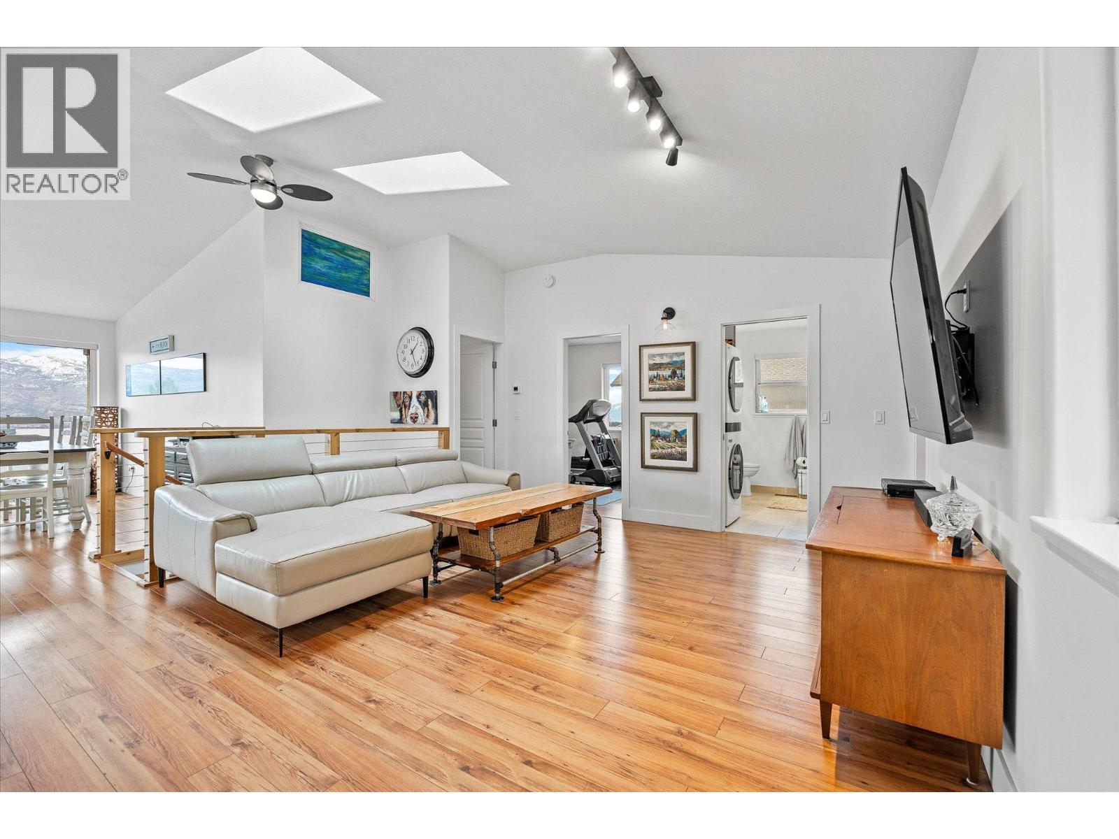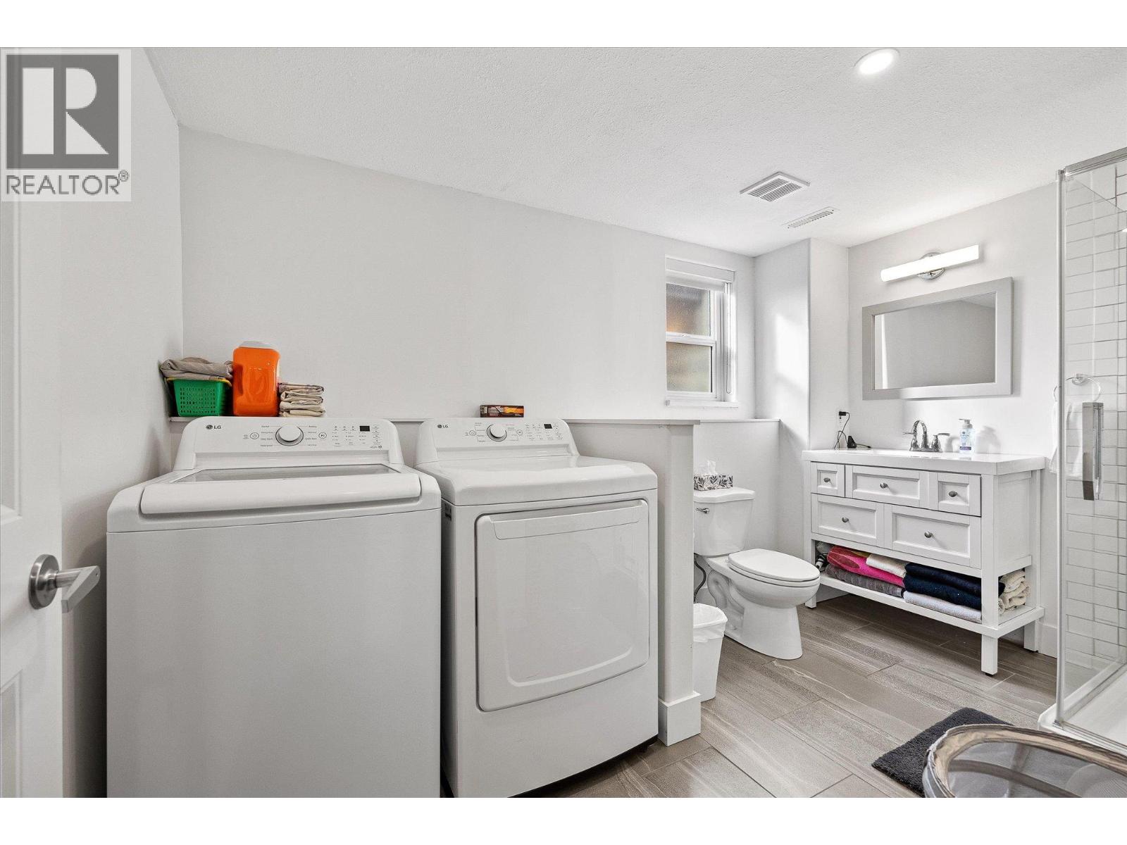 Experience the charm of this updated 4-bedroom plus den (could be a bedroom), 3-bathroom home in Lakeview Heights, offering breathtaking 180-degree panoramic views of Lake Okanagan and Upper Mission's twinkling lights. The main level, remodeled in 2017, boasts an open kitchen and dining area with abundant windows for natural light and stunning views. The kitchen features a large island and stainless steel appliances. The main floor includes a 3-piece bathroom updated in 2023, complete with a new washer and dryer, and a primary bedroom with vaulted ceilings, an updated ensuite, and a beautiful deck to enjoy the views. Additionally, there is a bedroom with a spacious walk-in closet, a versatile den, and a small pantry/mudroom by the front door. The lower level offers flexibility: it can be converted into a 2-bedroom suite with its own washer and dryer in the bathroom, ideal as a mortgage helper, or left open as part of the main home, providing a great space for older children with their own laundry facilities. There is room to add a single car garage with storage or car port by the upper main door. The upper yard features two walking paths leading to a level grass area with a storage shed and fire pit. This home is centrally located near the West Kelowna wine trail, with numerous wineries, restaurants, and amenities just a short distance away. Enjoy the best of Lakeview Heights living in this beautiful home which is listed $54K under assessed value making this a smart buy. (id:14735)