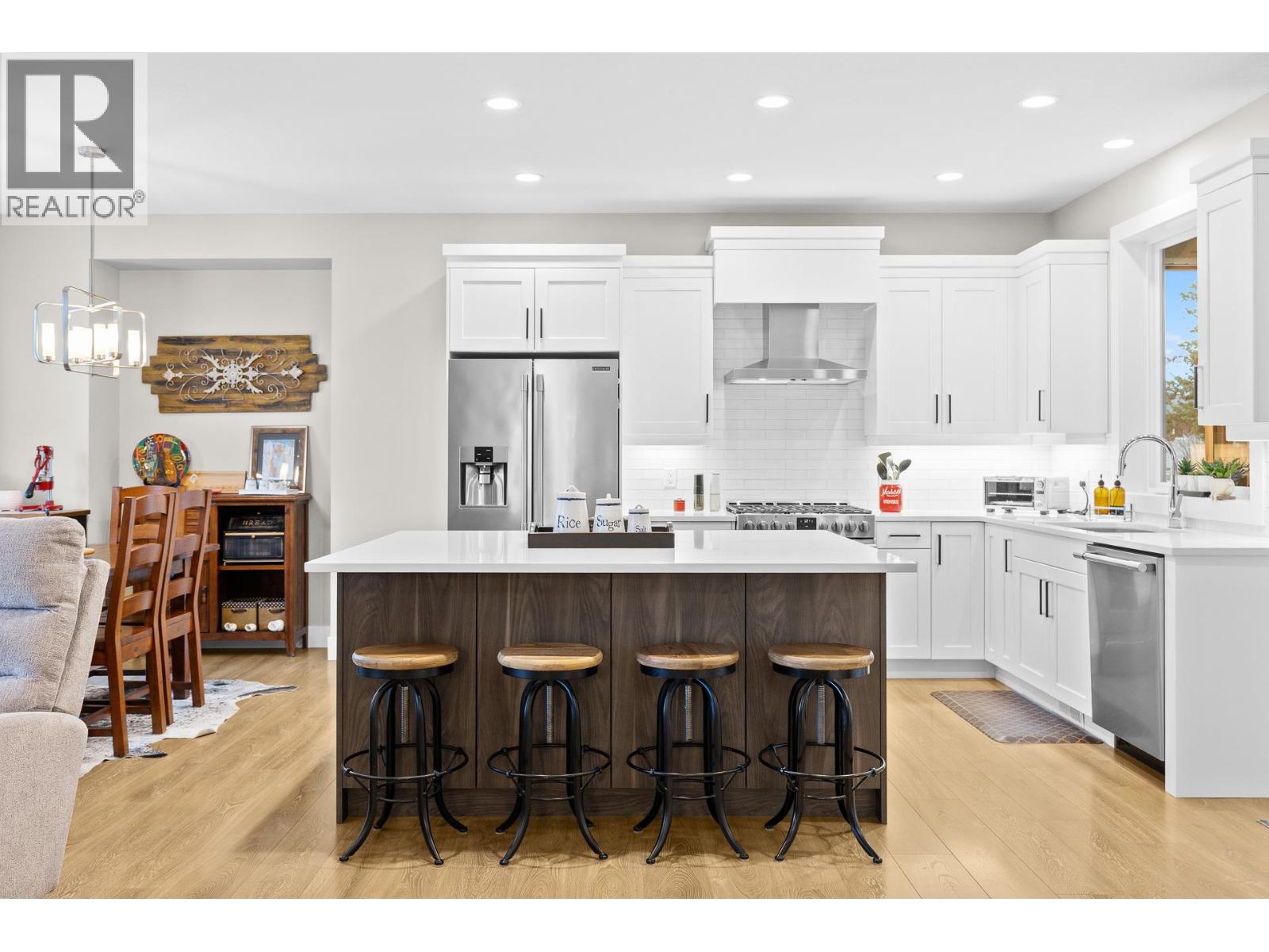 OPEN HOUSE SATURDAY 12 Noon - 2PM. Stylish Smith Creek home with legal suite and RV parking. Built by H&H Homes in 2018, this grade-level entry, two-level home offers 2,754 sq. ft. of well-designed living space with mountain views, strong street appeal, and exceptional functionality. The bright main floor features an open-concept layout with modern finishes, quartz countertops, a large island, gas range, and seamless flow to both front and rear covered balconies — perfect for everyday living and entertaining. Three bedrooms are located on the main level, including a spacious primary suite with walk-in closet and a 5-piece ensuite complete with soaker tub and glass shower. Main floor laundry adds convenience. The lower level includes a fully self-contained legal 1-bedroom suite with separate entrance, dedicated parking, its own laundry, and private patio space — ideal as a mortgage helper or for extended family. An additional 5th bedroom on the lower level offers flexibility to add to the main home or make a 2-bedroom suite configuration. The 0.20-acre corner lot provides side RV access/parking, underground irrigation, and a double attached garage. Located just minutes from Shannon Lake Golf Course, parks, hiking trails, schools, and all West Kelowna amenities. This beautifully maintained, move-in-ready property offers both lifestyle and long-term flexibility. (id:14735)