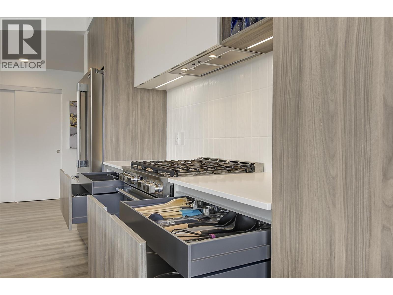 Welcome to this stunning new 3-bedroom, 2-bathroom corner-unit condo in the highly sought-after Residences at Lakeview Village. Located on the main floor, this spacious, open-concept home is filled with natural light from expansive windows, offers pool views, and features durable vinyl-plank flooring throughout. Power blinds have been ordered for the patio doors, along with gravity blinds for the living room and kitchen windows, adding both style and convenience. The beautifully designed kitchen showcases quartz countertops, abundant cabinetry, a 5-burner gas stove, and a massive island perfect for entertaining. The generous primary suite includes a walk-in closet and a spa-inspired ensuite complete with dual vanities, quartz counters, and a tiled shower. Step outside to your spacious covered deck with direct access to green space and walking paths — the perfect place to relax and enjoy warm Okanagan days and evenings. Located just steps from the fitness centre, this home also includes THREE PARKING STALLS and TWO STORAGE UNITS for exceptional functionality. Residents enjoy resort-style amenities including an onsite greenhouse complete with hydroponics and irrigation for year-round growing, a resort-inspired outdoor pool and hot tub, fitness centre, dog wash station, community gardens, secure parcel delivery, and a cutting-edge Butterfly entry system. Just steps to Nester’s Market, Lakesider Brewing Co., a dental office, school, transit, and sports courts — with even more everyday conveniences and services close at hand — and only minutes to beaches, boat launches, and renowned wineries, this home offers an exceptional lifestyle in one of the Okanagan’s most exciting and evolving neighbourhoods. (id:14735)
